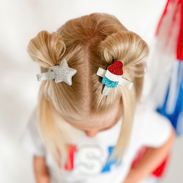 Every little girl needs the perfect hair clip to complete her look! The Bomb Pop Clip Set is the perfect hair accessory for celebrating the 4th of July or showing patriotic spirit any day.