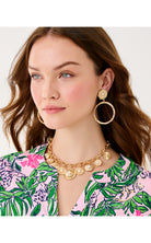 Bamboo hoop doorknocker earrings with sunburst earrings with sunburst and pearl topper.