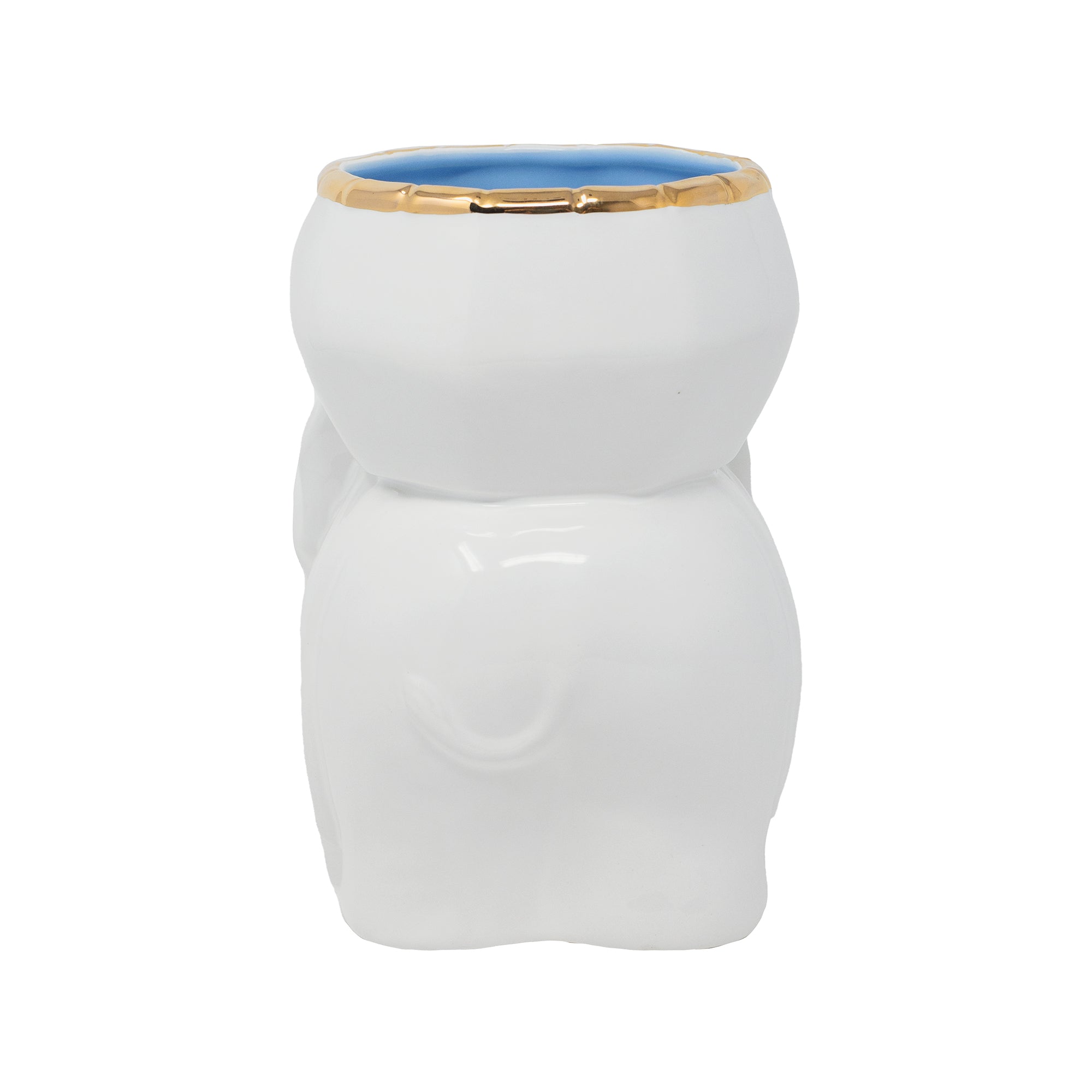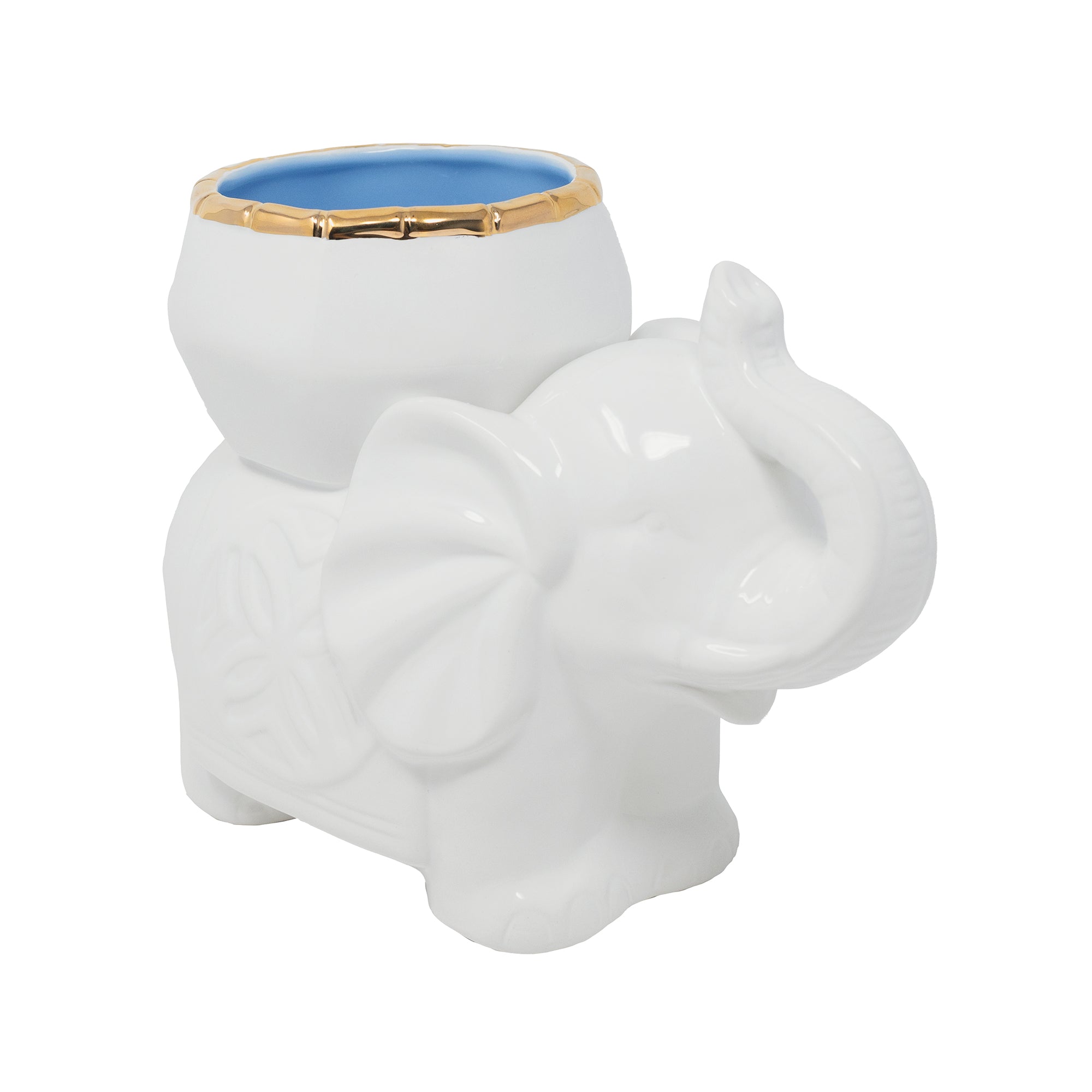 Add a touch of coastal charm to your home with this delightful elephant-shaped ceramic cache pot. Crafted in a soft coconut white finish, this unique planter features an adorable elephant carrying a pot on its back—perfect for bringing a sense of playful elegance to your space. With gold accents around the rim, it’s the perfect blend of relaxed coastal style and polished flair. Whether you’re planting lush greenery, succulents, or simply using it as a stylish accent piece, this elephant cache pot brings a dash of character to any room.