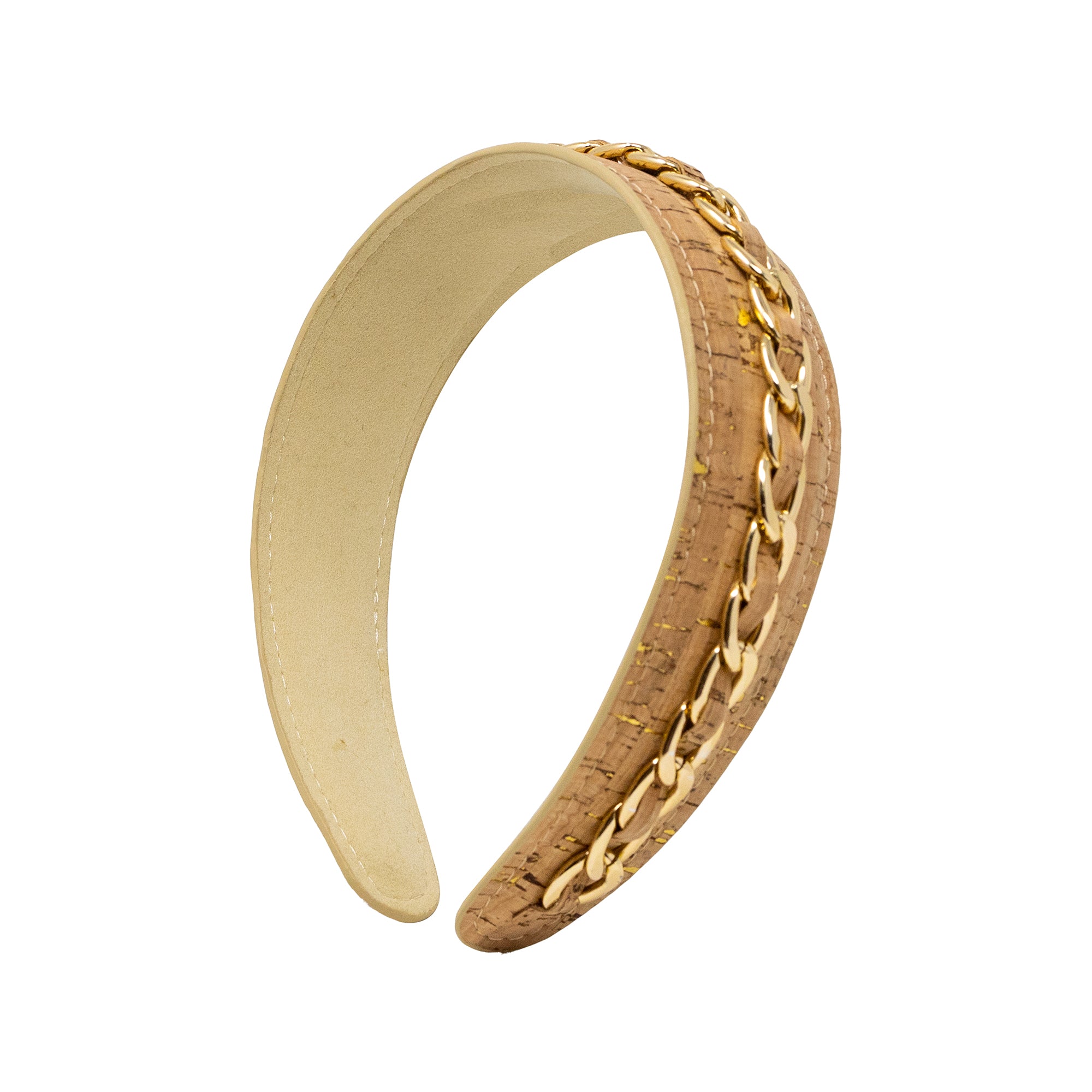 Elevate your do' with this gold chain-adorned headband with cork details. Whether you're running to the grocery or headed out for date night, this cute headband is the perfect hair accessory for any outfit.