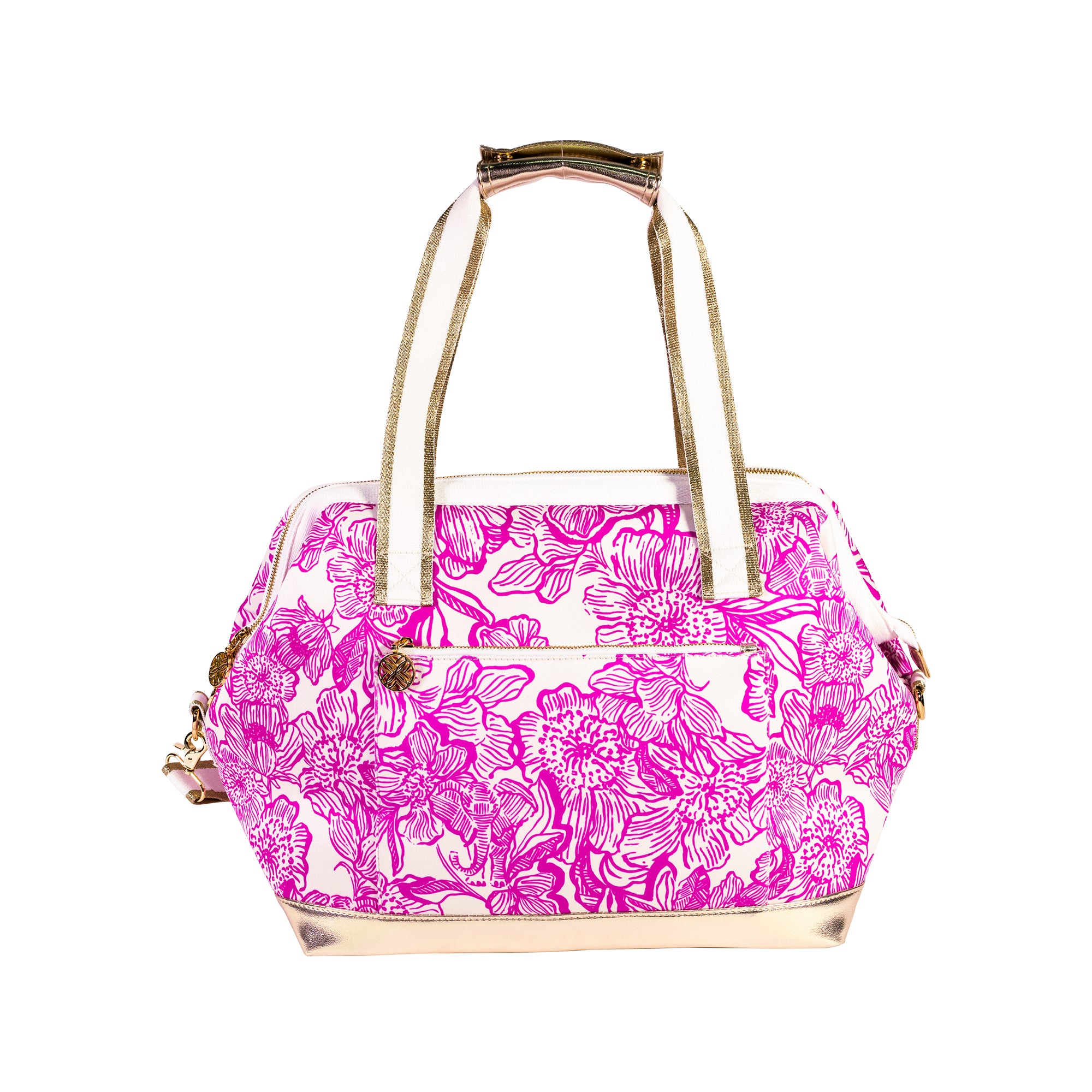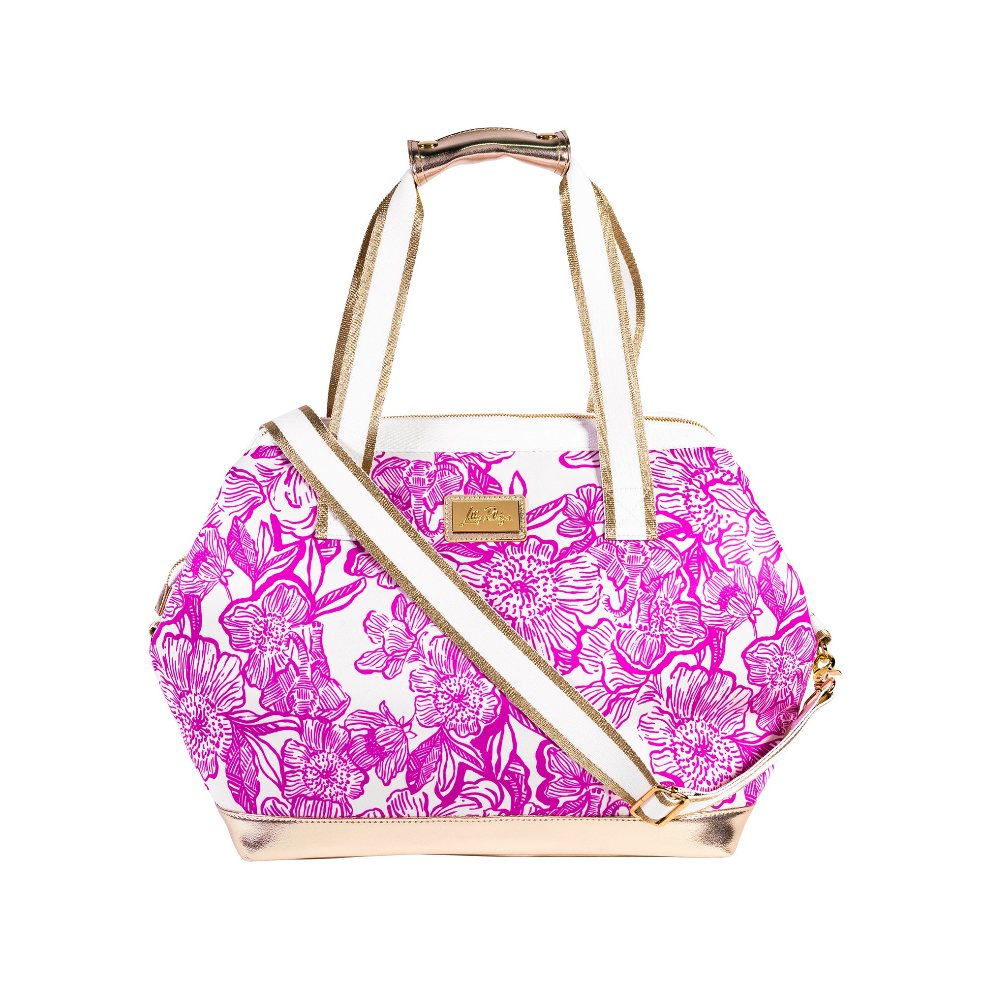 Make every lunch break or beach picnic effortlessly chic with our neoprene cooler in the vibrant Unforgettable Pink pattern. Designed with a structured wire frame opening for easy loading and unloading, this cooler features a secure zipper closure, gleaming gold accents, long handle straps, and an adjustable crossbody strap for grab-and-go convenience. Whether you're packing lunch for the office or chilled snacks for a seaside escape, this stylish and functional cooler keeps everything cool while adding a bold pop of coastal charm.