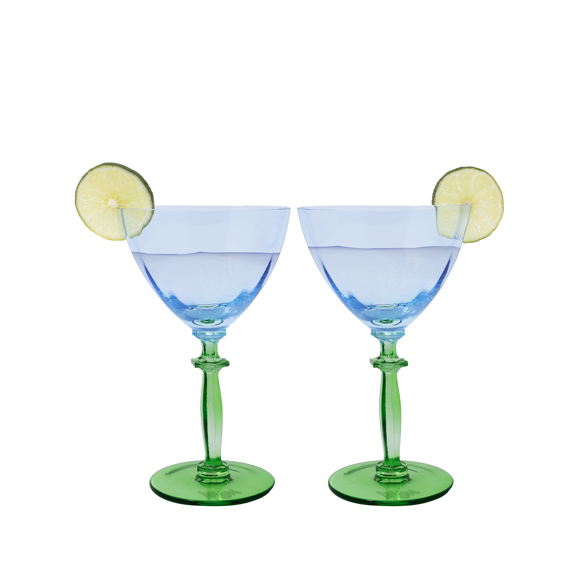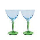 Whether it's a happy hour cocktail or a chilled glass of bubbly, this glass set lets you sip in style. Each wine glass is made of colored glass for coastal charm. Wine glasses set of 2 hold 8 ounces for your favorite red, white, or rosé.