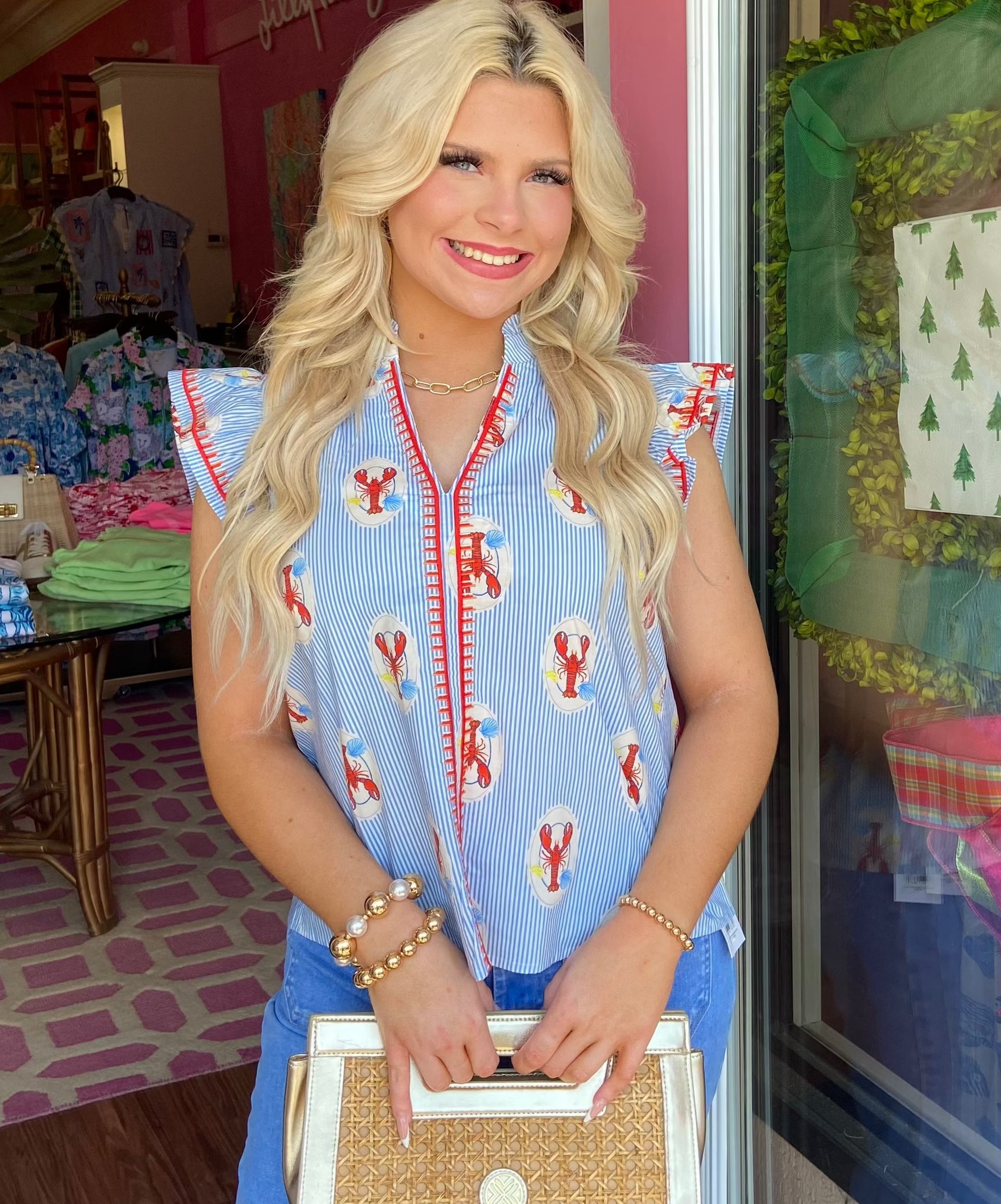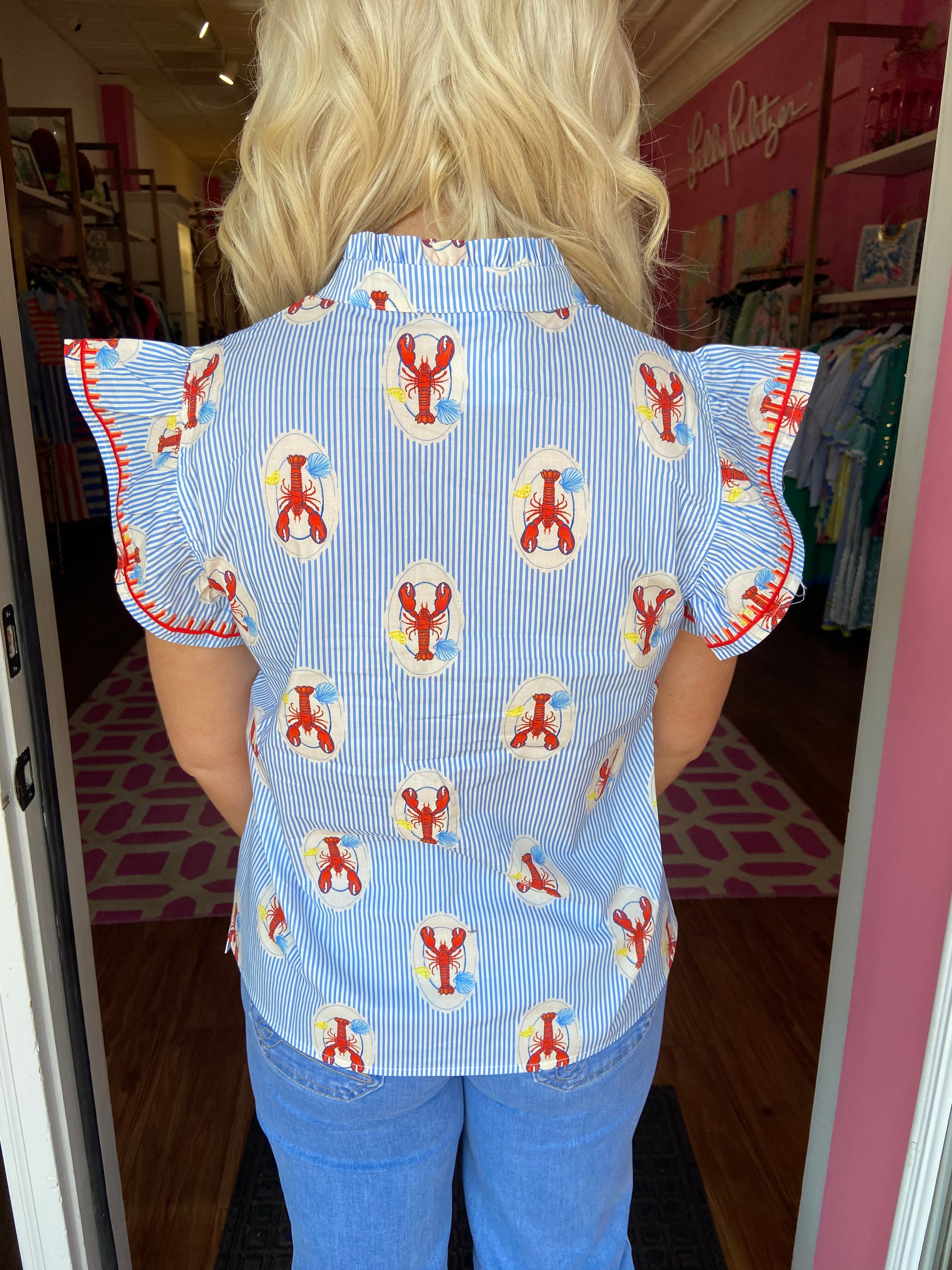 Embroidered Top - Lobster Block