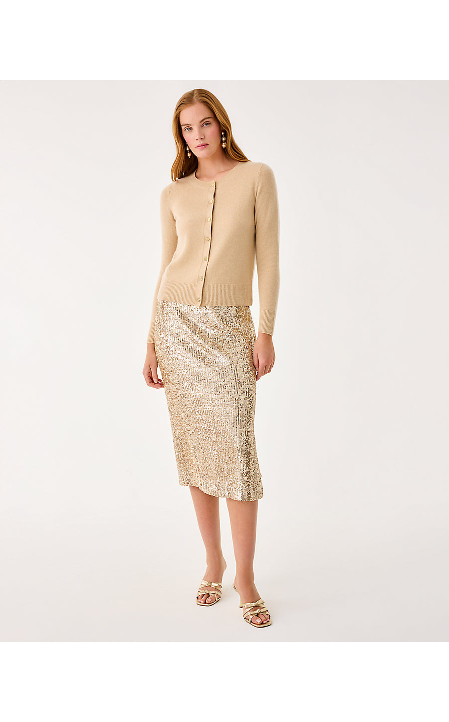 Fairley Cashmere Cardigan - Heathered Sand Bar Metallic