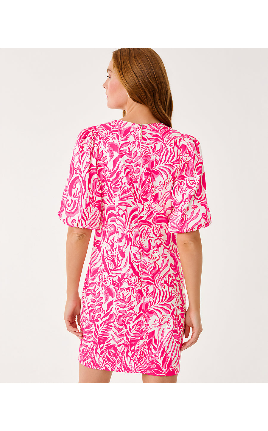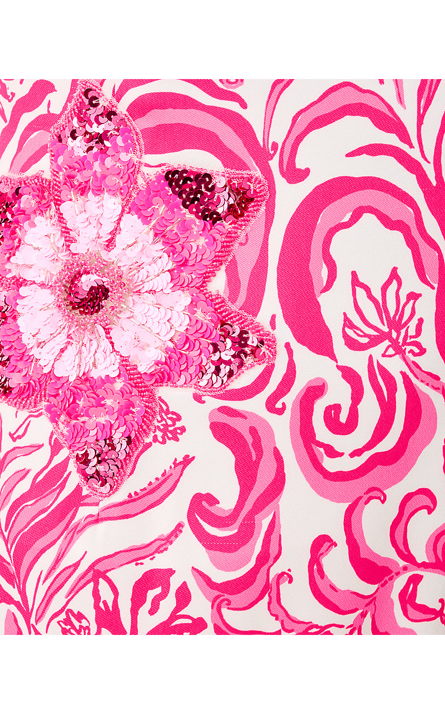 Lorraine Beaded Stretch Dress - Sunshell Pink Crossggrain Festive Fronds
