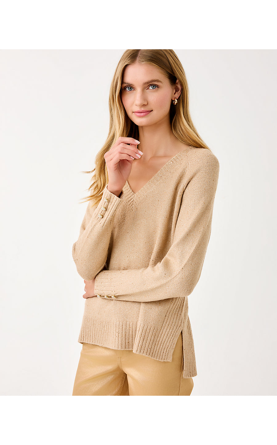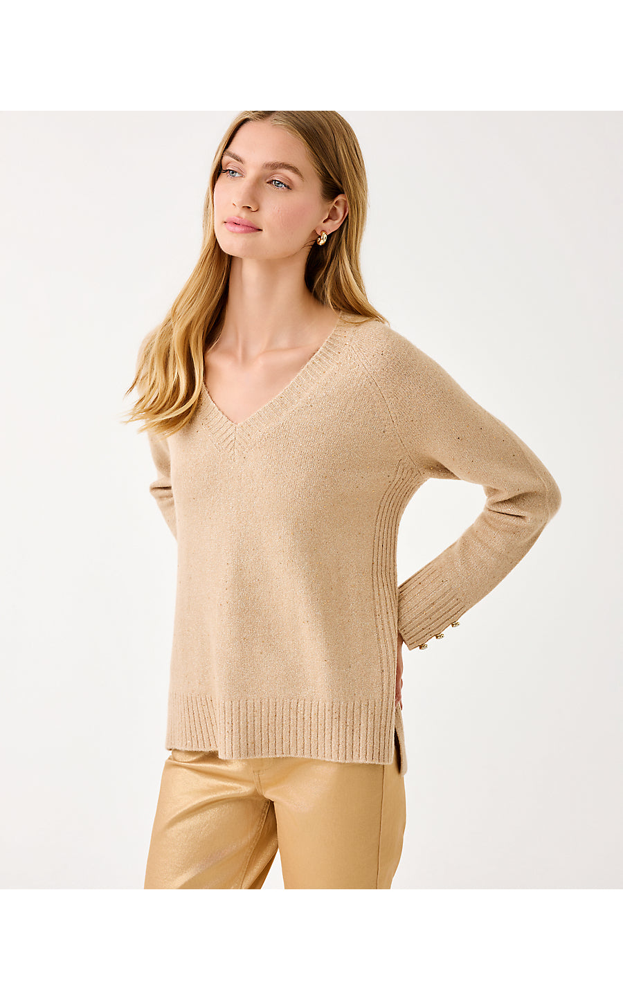 Fairley Cashmere Cardigan - Heathered Sand Bar Metallic