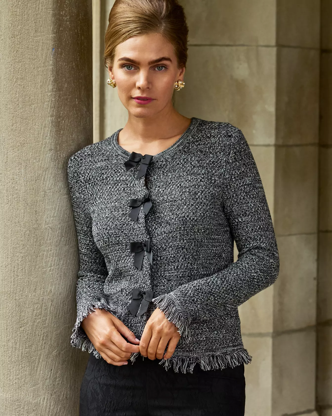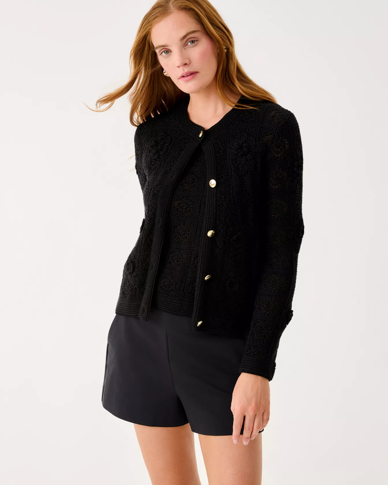 Lenalie Cardigan - Black Metallic Garden Crochet