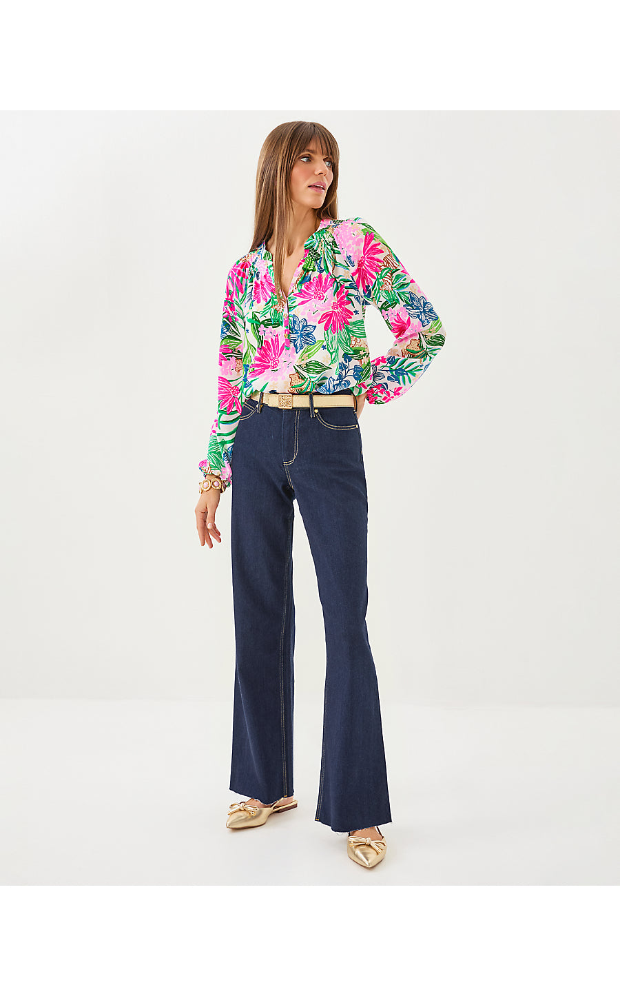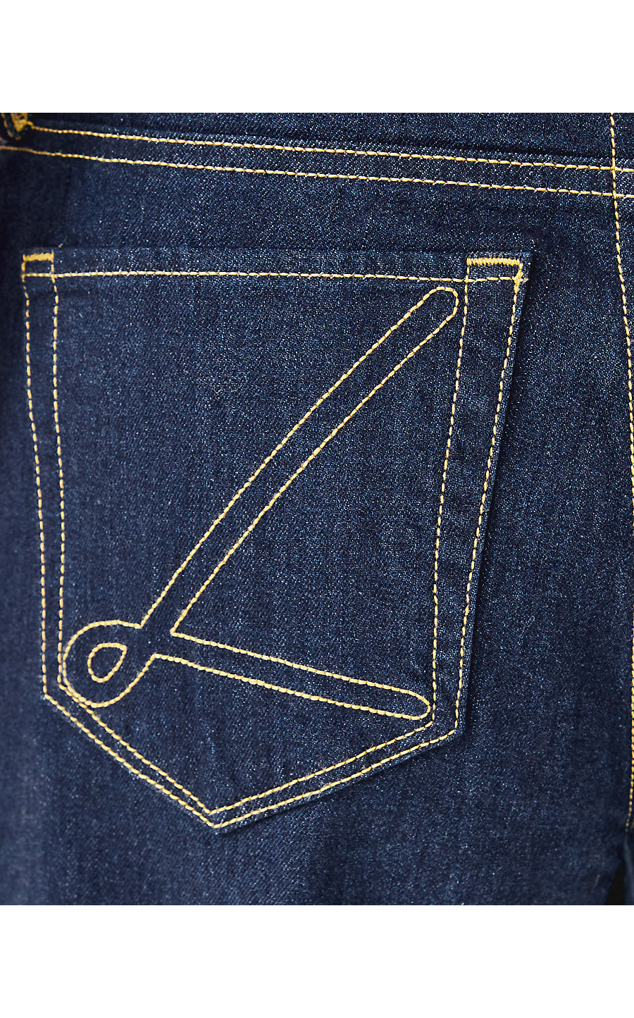 - High rise, straight fit, full length jean with a raw hem designed for you to cut to your custom length.