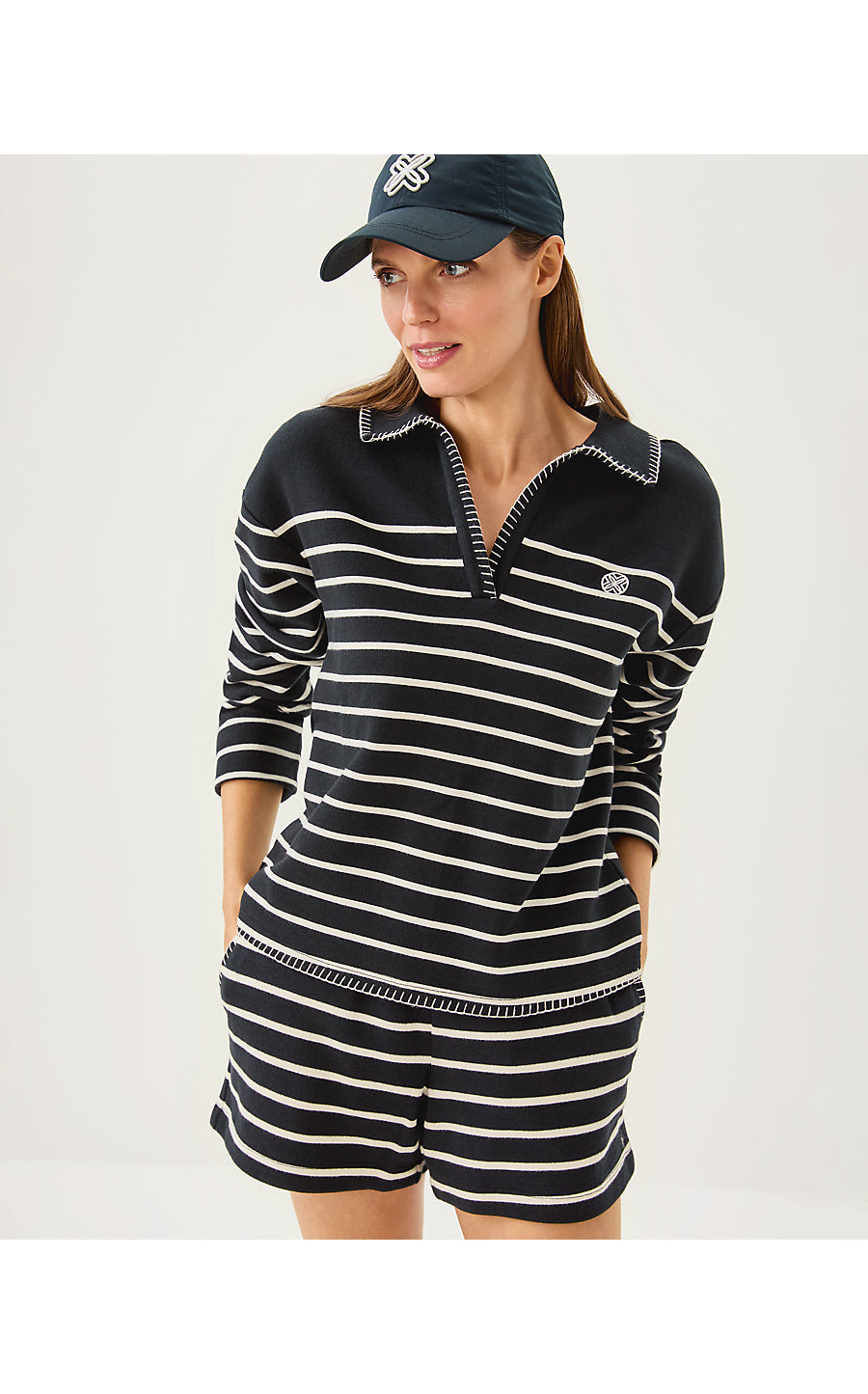 4" Aubra Mid Rise Terry Short - Noir Legacy Stripe