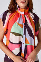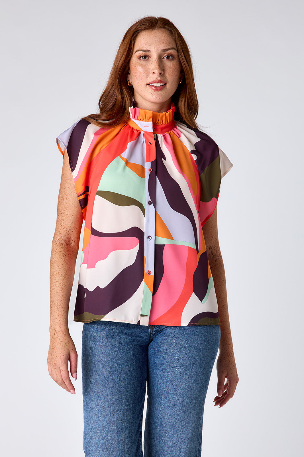 Brighten up your wardrobe with the Billie Blouse – Rocky Top by Crosby, a playful and polished top that brings color and personality to any look. This short-sleeved blouse features an eye-catching multicolor print in a vibrant mix of white, pink, red, green, and purple, creating a fresh, artistic vibe that’s perfect for the season. Whether you're styling it for work or the weekend, the Billie Blouse adds instant charm and energy to your outfit.