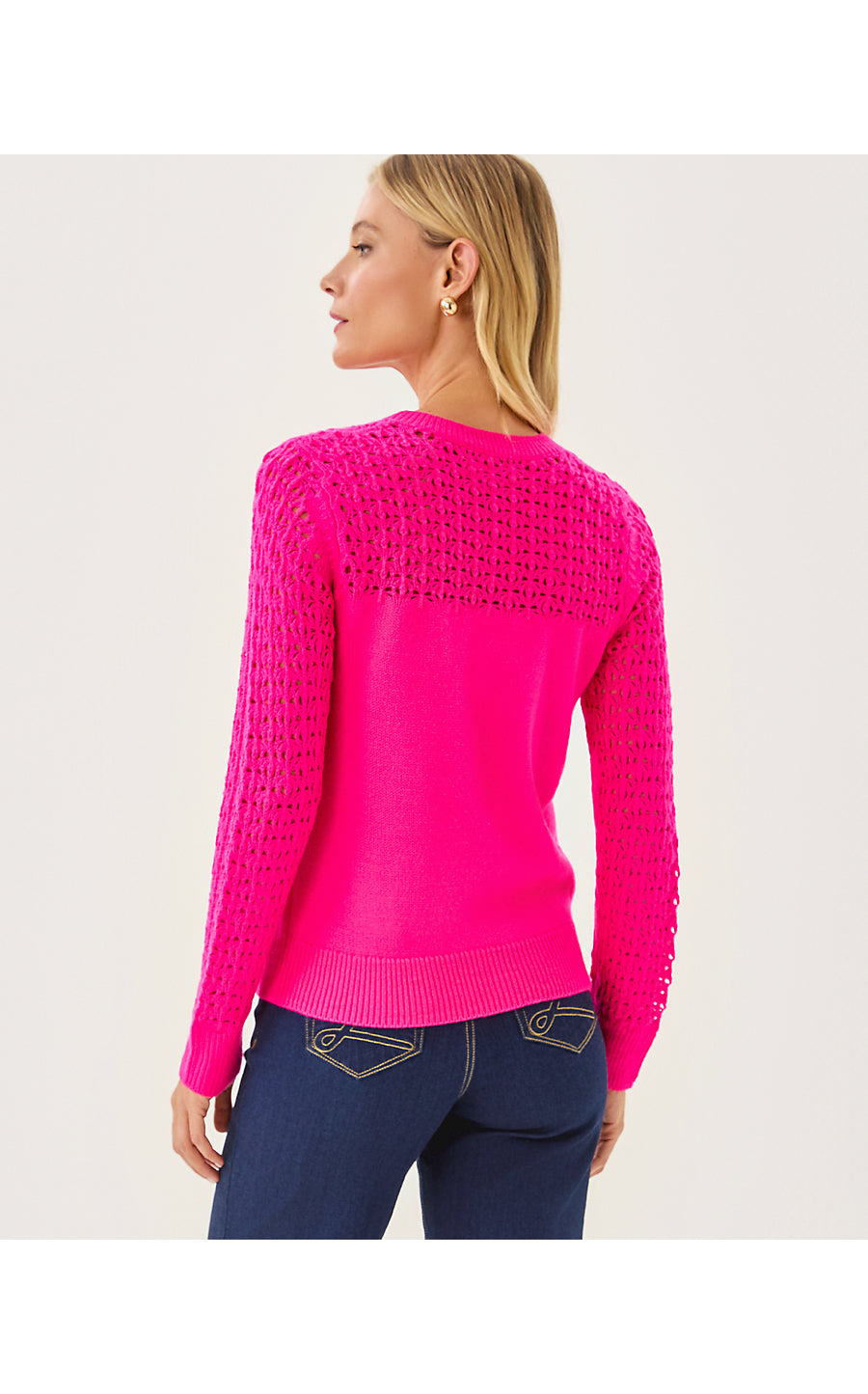 - Straight fit, long sleeve, crew neck pullover with pointelle stitches.