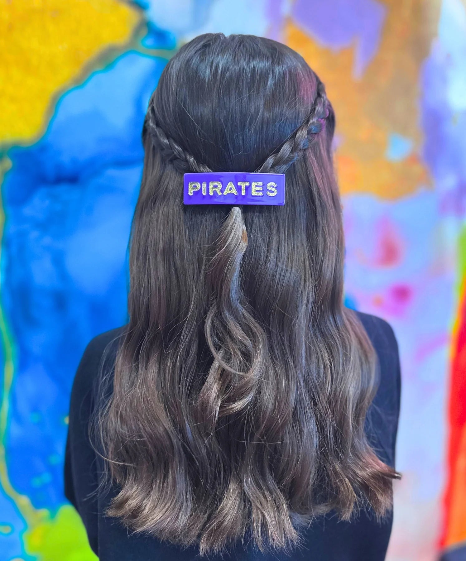 • Purple Rectangle Barrette Clip with Yellow Rhinestone PIRATES