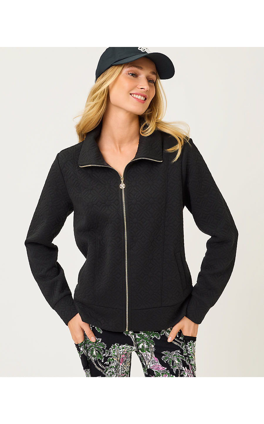 Eleni Zip-Up Jacket - Noir Butterfly Quilted Knit