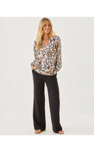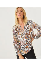 - Easy fit, pullover blouse with gold buttons and bracelet-length sleeves.