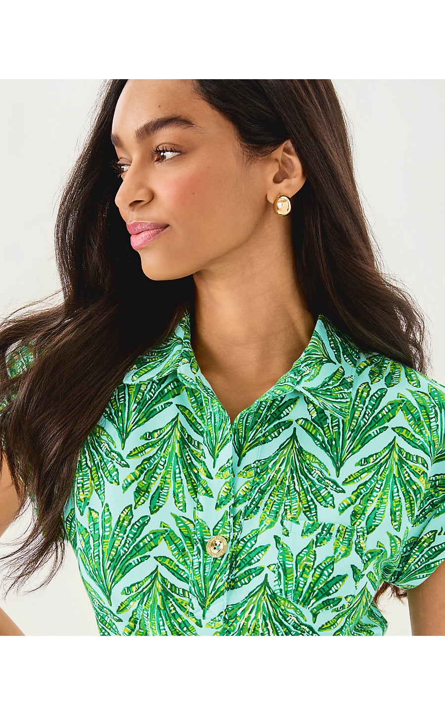 - Easy fit, short sleeve, popover dress with a collar, side vents, and a separate self sash.