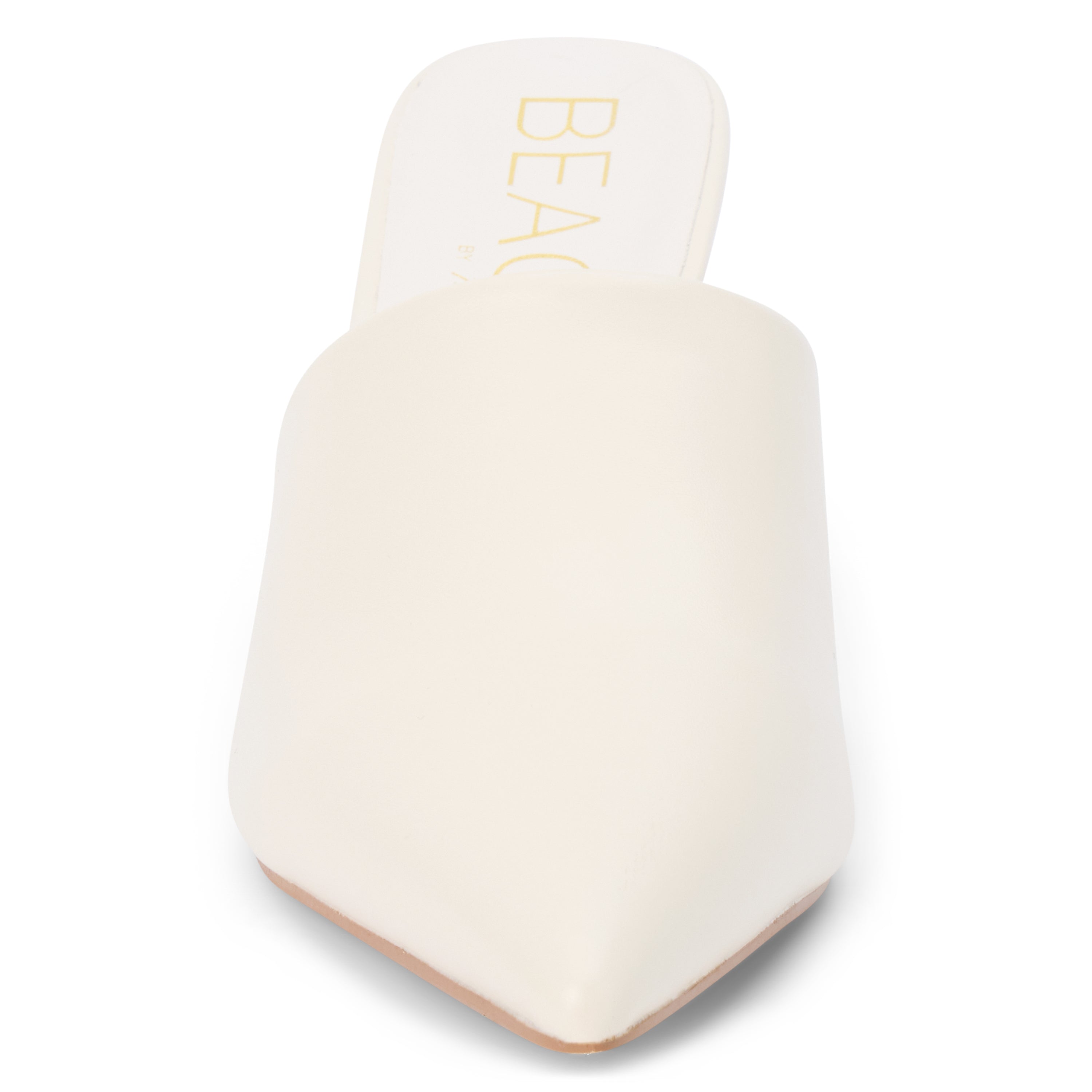 Sophisticated and sleek, this slip-on mule features a sharp pointed toe and a 3-inch block heel wrapped in smooth synthetic leather. The minimalist ivory faux leather upper is paired with a barely-there platform for a clean, modern look. Designed with a padded insole and faux leather lining, Garret delivers comfort with every step. Ethically made and completely vegan, it's the perfect blend of style and conscience—ideal for workdays or weekends alike.