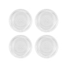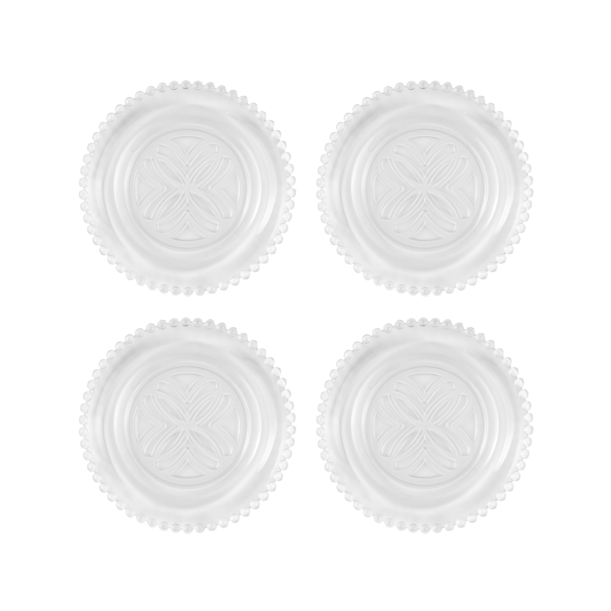 - Set of 4 appetizer plates with embossed glass and a beaded border.