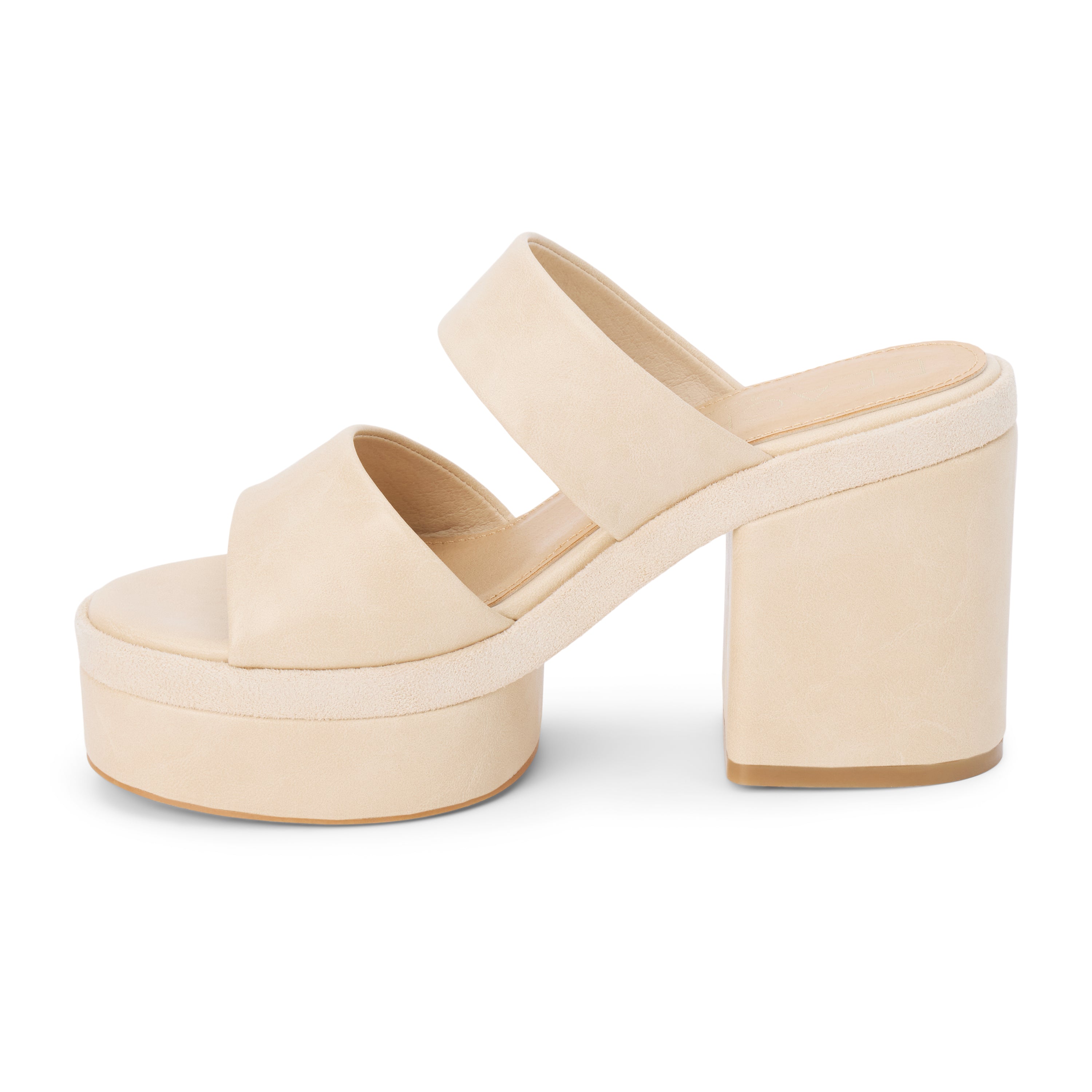 Crafted with care, this sleek two-band sandal features a chunky 4-inch block heel and a 1.5-inch platform for height without the hassle. Designed in a chic faux leather/faux suede finish with a synthetic leather wrap, it offers a cruelty-free alternative that doesn’t compromise on style. The slip-on silhouette, padded insole, and faux leather lining ensure all-day comfort, while the minimalist design adds versatility to your wardrobe. Made in China and proudly vegan, the Graham sandal is your go-to for effortless elevation.