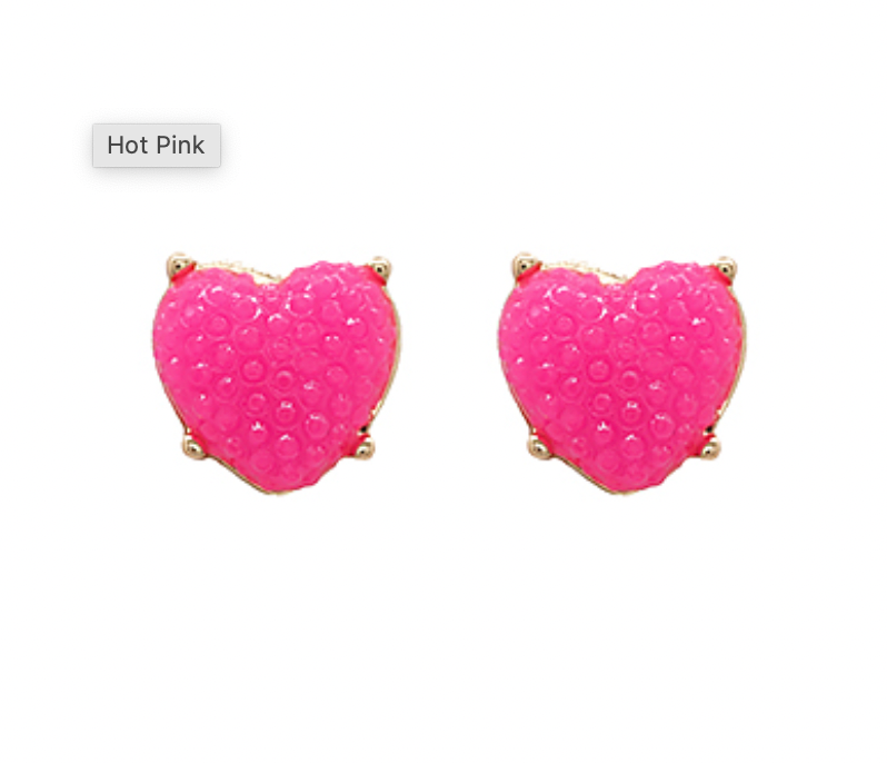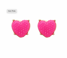 Heart Dome Shape Stud Earrings - Hot Pink