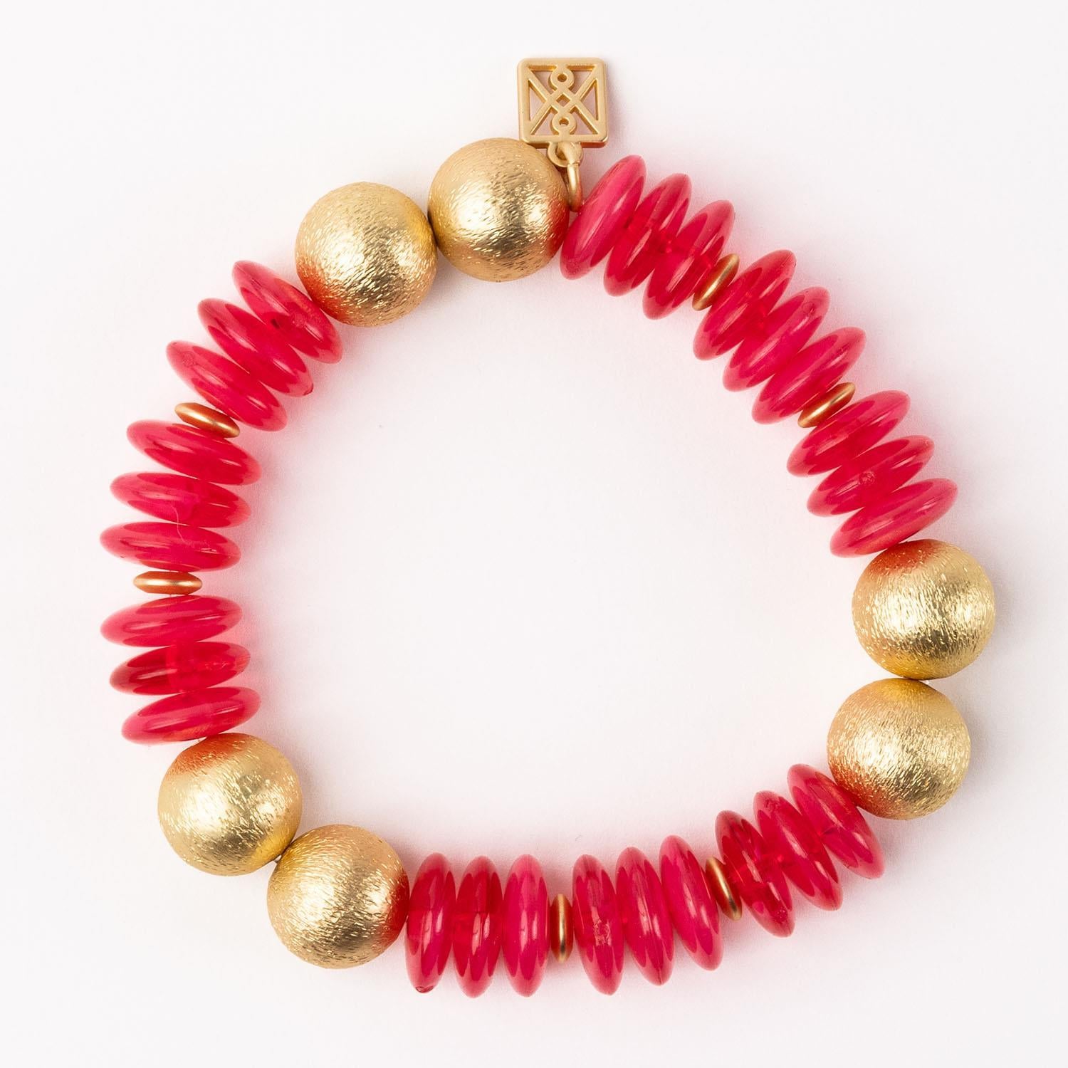 Introducing the James Bracelet, a dazzling addition to our Colorful Collection. This vibrant bracelet features a delightful mix of acrylic beads and gold-plated beads, creating a playful yet sophisticated design. Perfectly complementing our Chloe and Luna bracelets, the Chloe Bracelet is designed to be layered or worn solo for a pop of color. Lightweight and comfortable, it’s the ideal accessory for adding a touch of charm to any outfit.