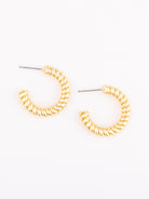 Sleek with a twist, the Josie Earrings feature a sculptural, rope-inspired hoop design in a polished gold finish. Their textured curves add dimension and shine, making them a chic statement for both casual days and dressed-up nights. Lightweight and versatile, these hoops are the perfect blend of classic elegance and modern flair.