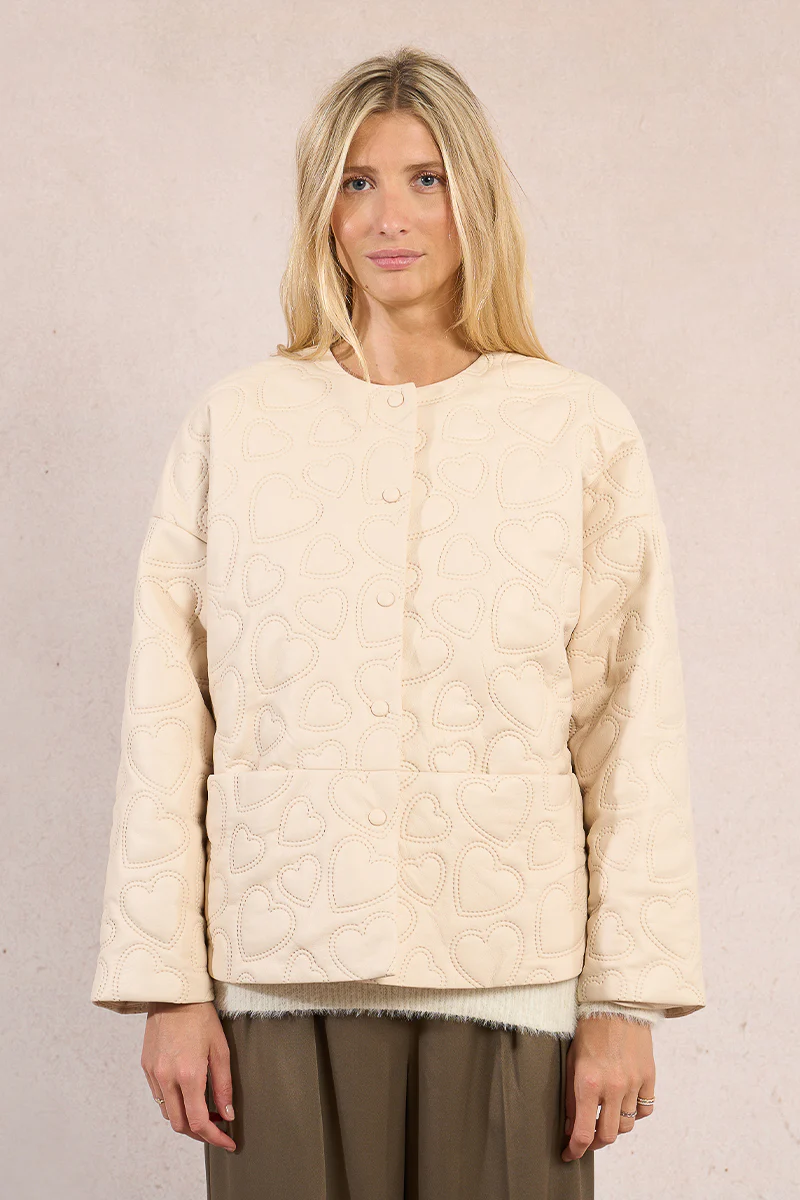 -Embossed heart pattern quilted jacket