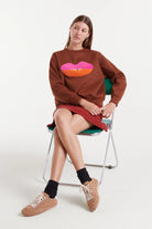 Add a dose of playful charm to your casual wardrobe with the Lips Sweatshirt - Brown from Compania Fantastica. Featuring a warm brown base adorned with a bold all-over lips print in vibrant pink and red, this sweatshirt captures the brand’s signature quirky style while keeping comfort front and center. The classic crew neckline and relaxed fit make it an easy everyday staple that’s equal parts fun and functional.