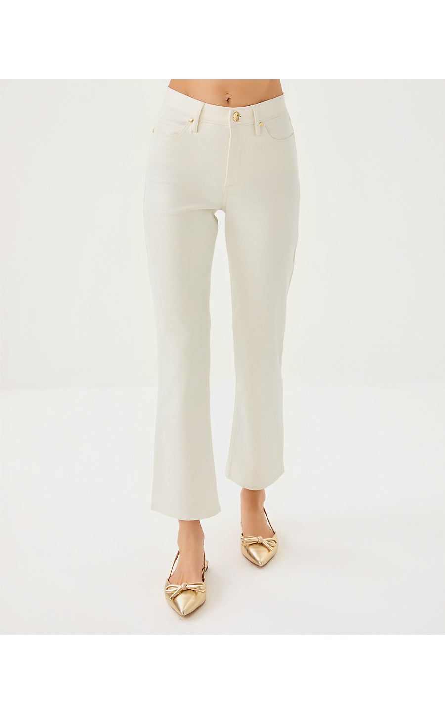 28" Liza Shimmer Crop Flare Jean - Coconut Metallic