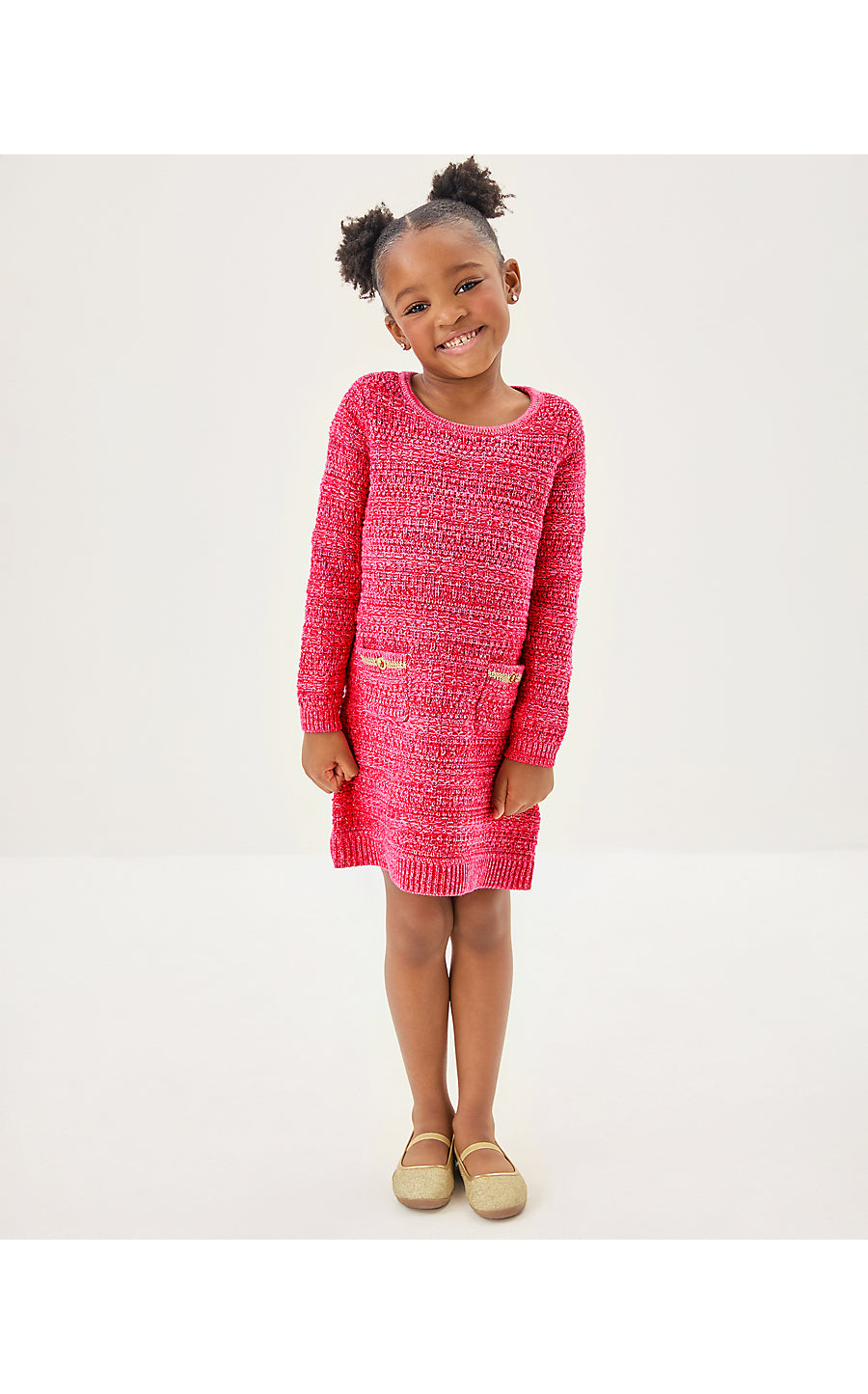 Introducing the Girls Lolo Sweater Dress - a burst of playful warmth in every stitch! This dress has colorful metallic details, making it an original and imaginative choice for everyday adventures.