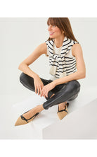 • Raffia slingback, pointed toe shoe with a leather cross-strap detail, square wooden heel, and a plush padded footbed.