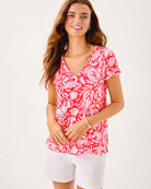 You'll want to grab this tee in every color and print under the sun. Meredith is a soft cotton jersey style tee with a V-neckline.
