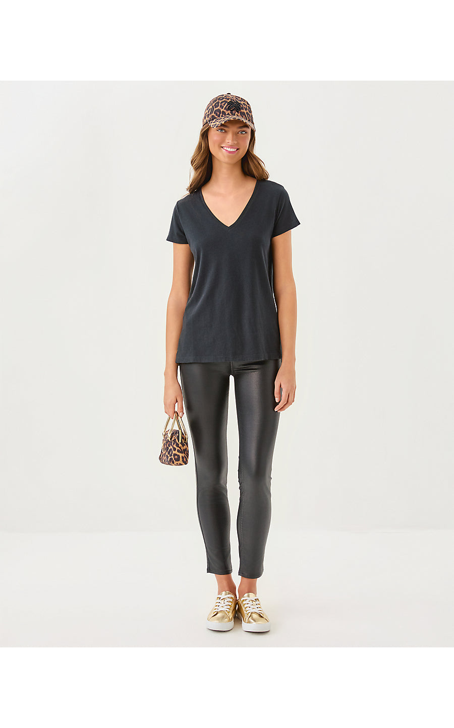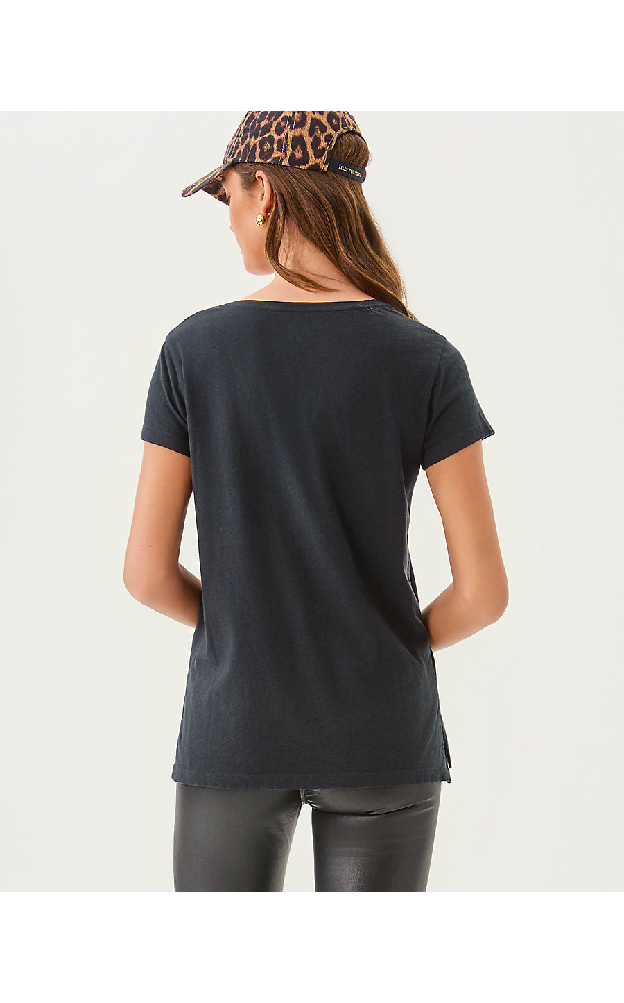 - Straight fit, short sleeve, pullover tee with a V-neckline.