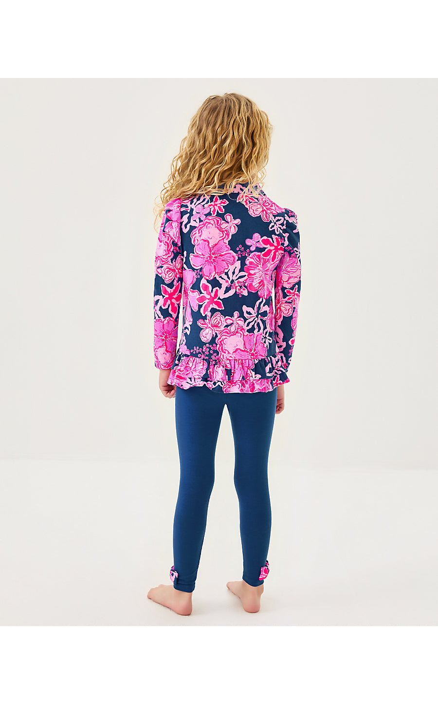 - Easy fit, tunic polo top with long sleeves and buttons. Includes matching pull-on leggings with hem bows.