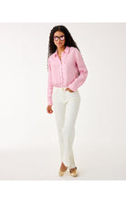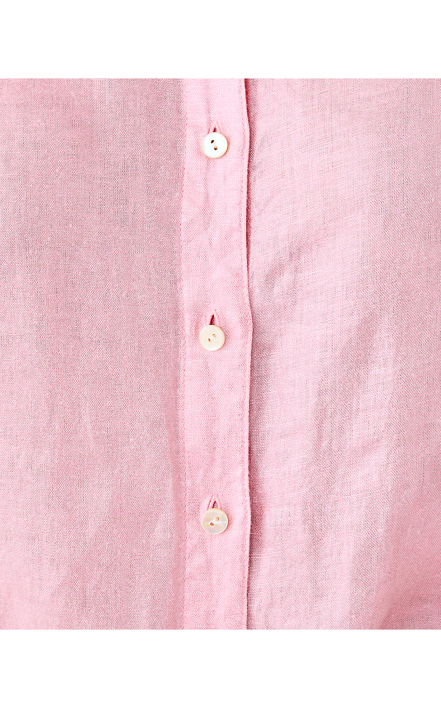 27" Straight fit, long sleeve, button down, machine washable linen shirt.