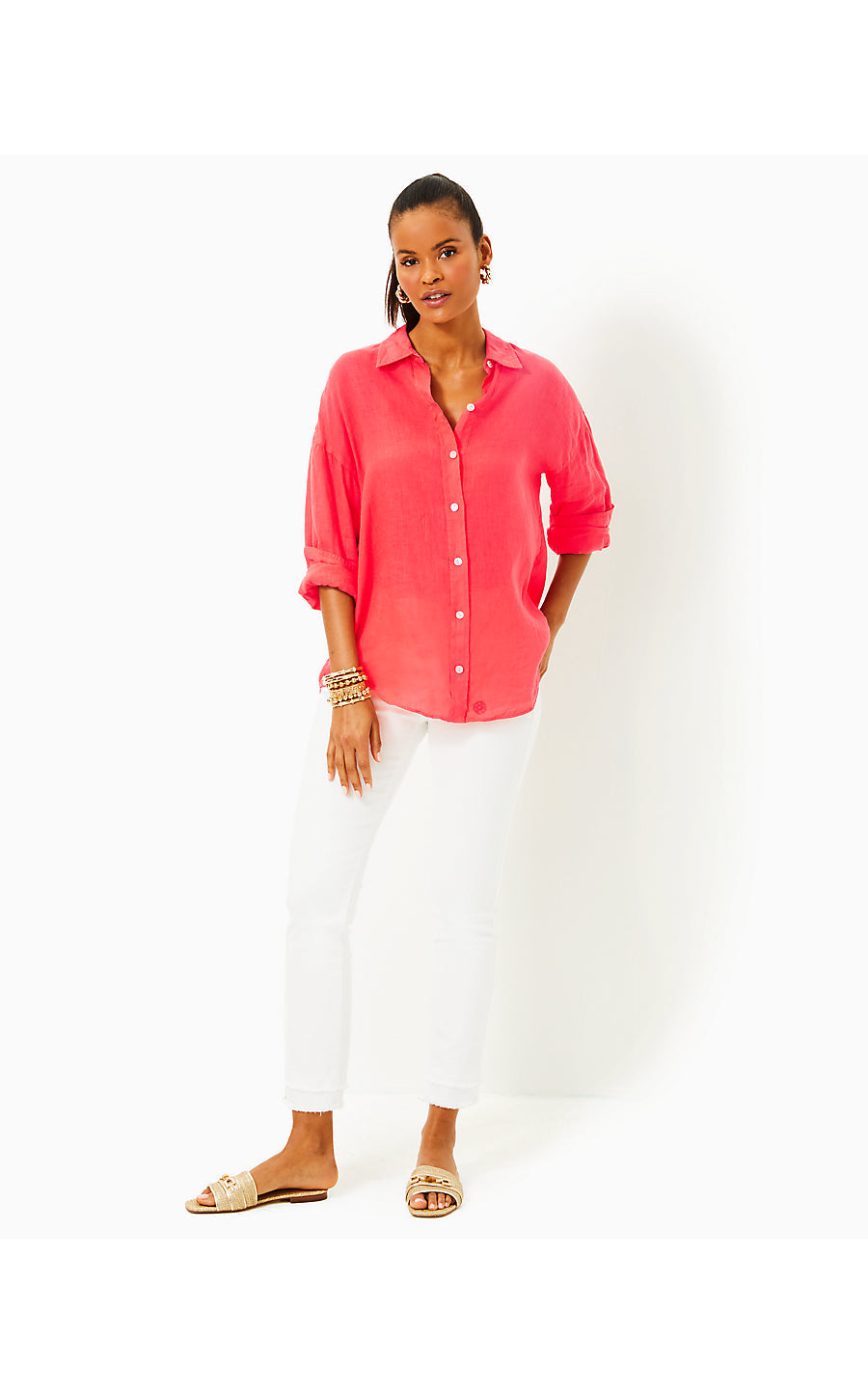 Toss on the Stevey Relaxed Button Down Shirt with white denim for summer's easiest outfit. Made from our Seacoast Linen, this classic style is finished with a high-low hem.