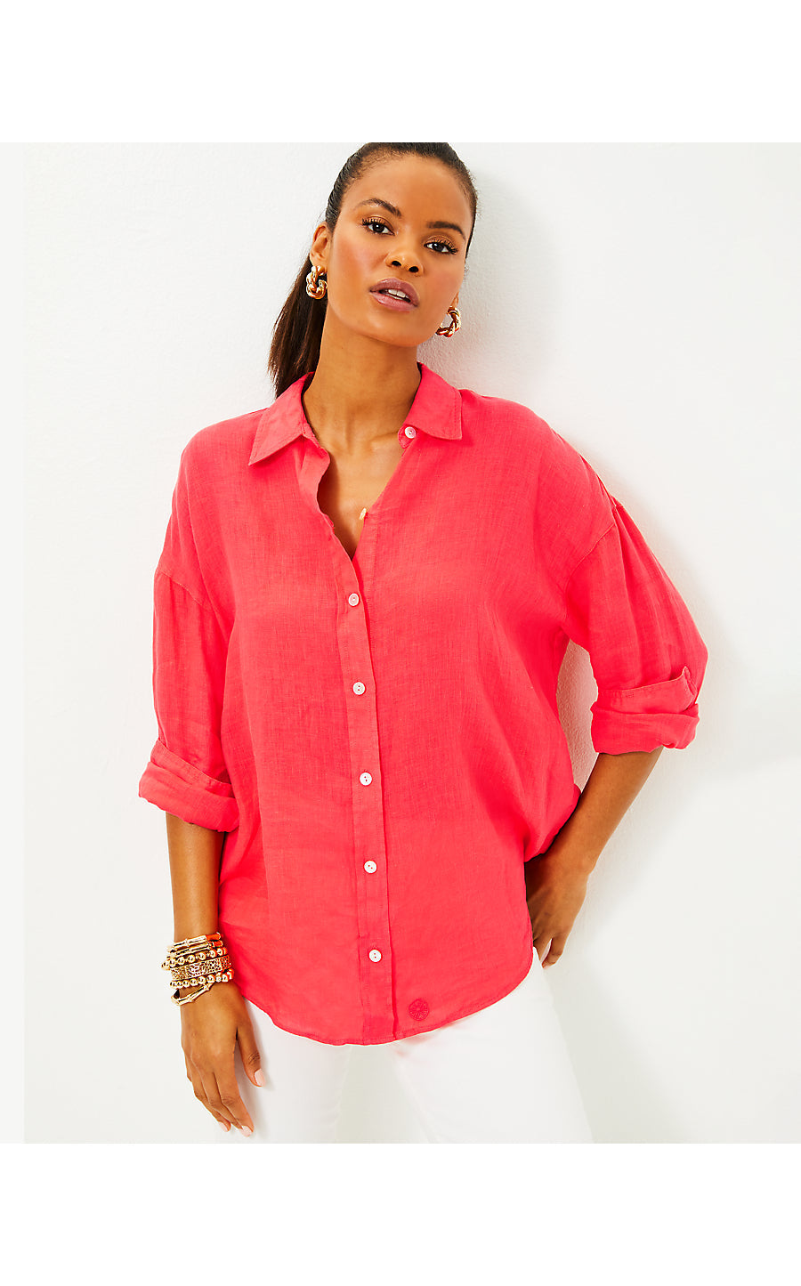 Stevey Relaxed Button Down Linen Shirt - Mizner Red
