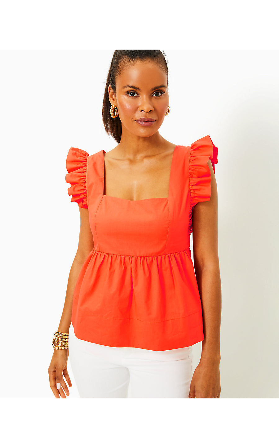 The perfect match for summer denim and shorts, our Tiana Babydoll Top is finished with charming ruffle sleeves.