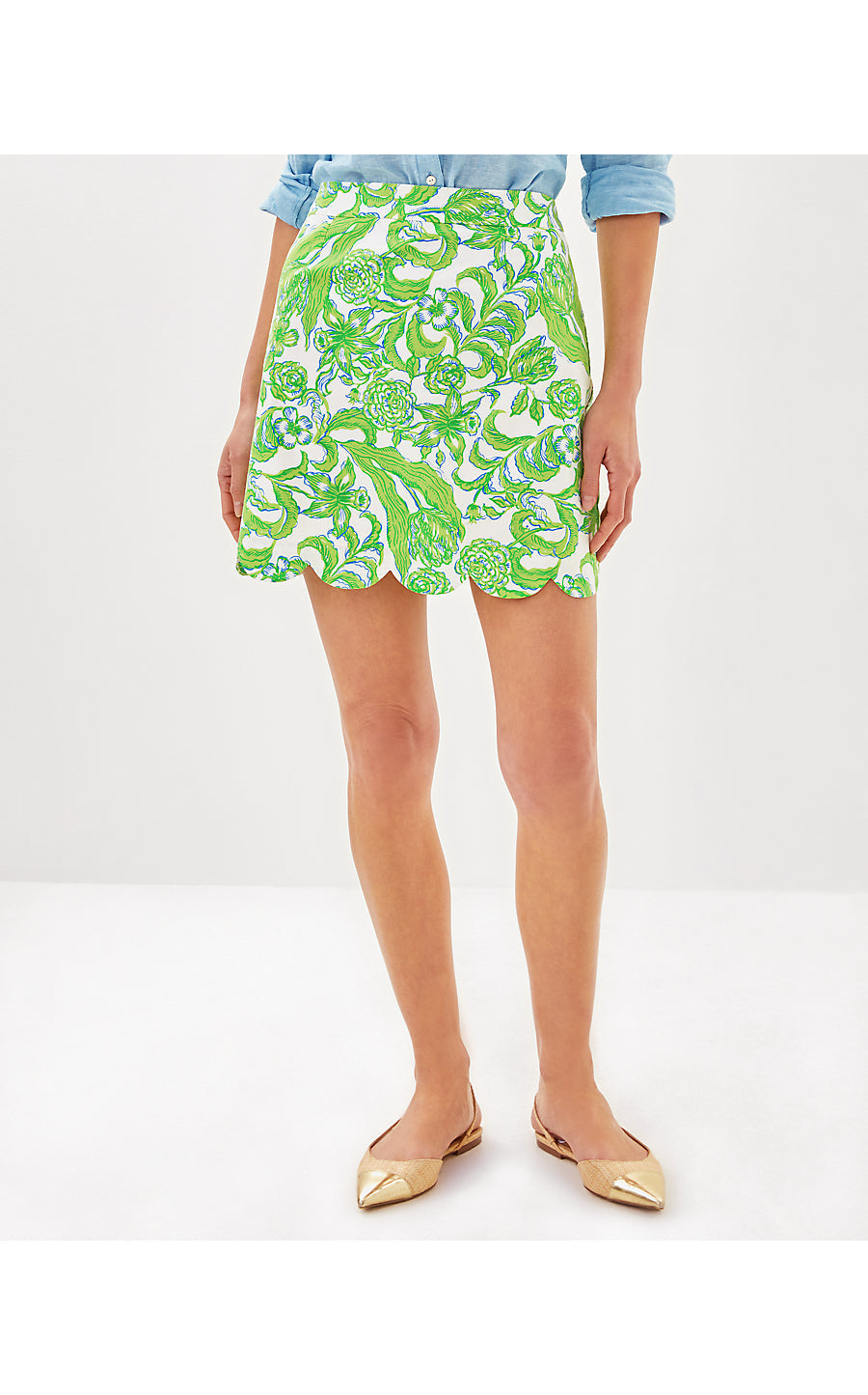 Make your everyday wardrobe brighter with our scalloped Tropper Mini Skirt.