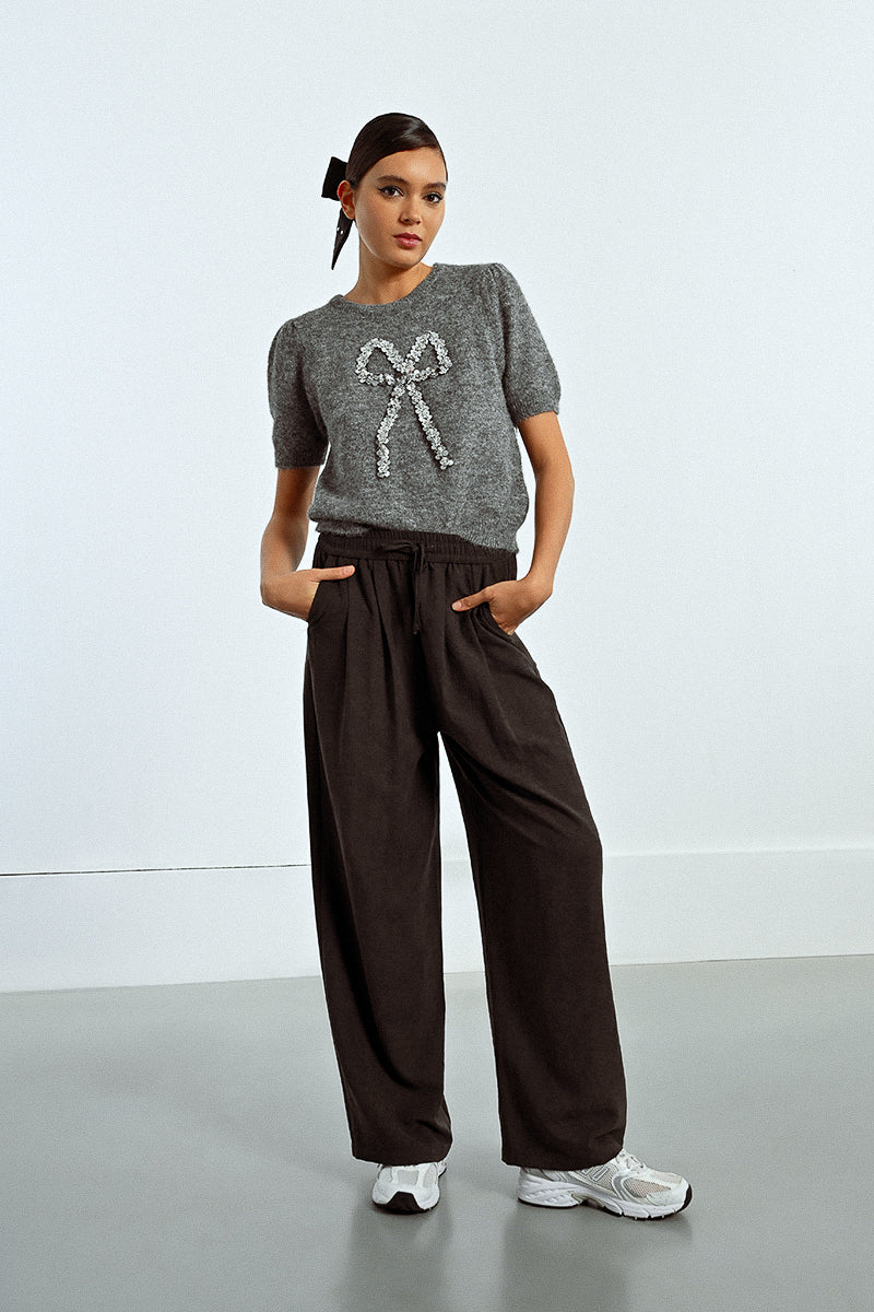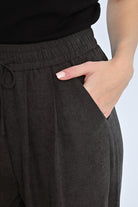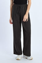 Stay effortlessly comfortable and stylish in these black wide-leg pants. Designed with a relaxed fit, they feature an elastic waistband with an adjustable drawstring for the perfect fit, along with subtle pleating that adds a touch of polish. The soft, lightweight fabric drapes beautifully, making them ideal for casual outings, travel, or lounging in style. Pair with a simple tee or dress them up with a blouse for versatile wear.