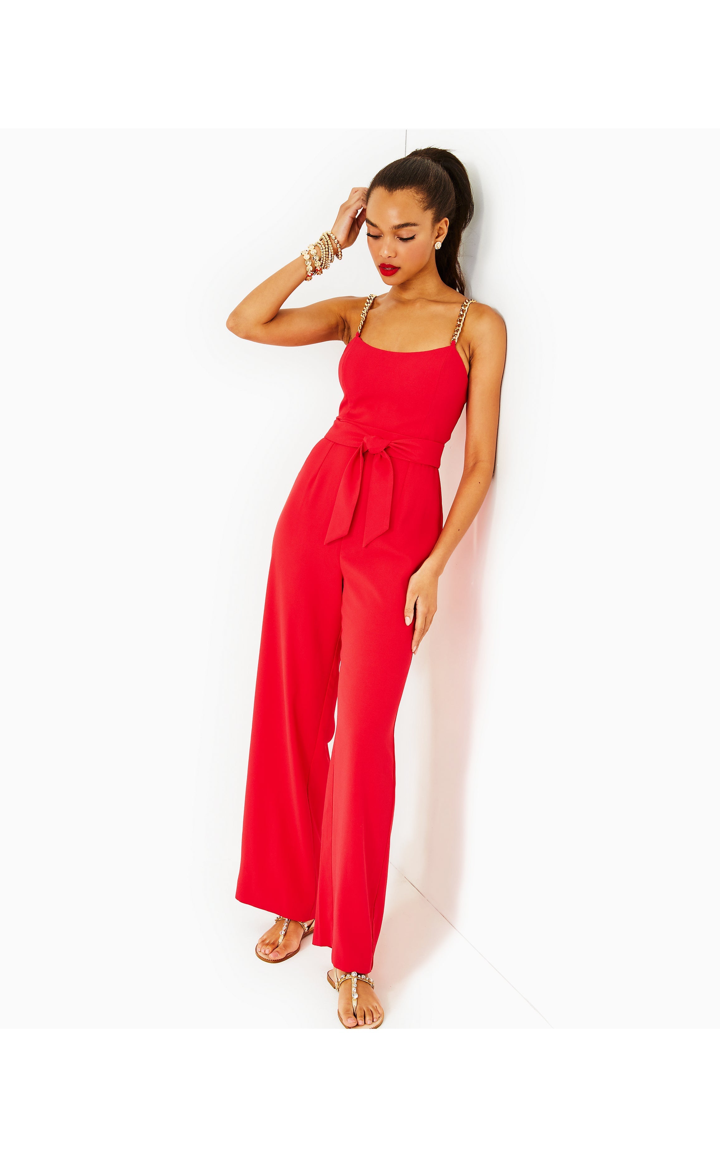 - Full length jumpsuit with a chain strap detail.