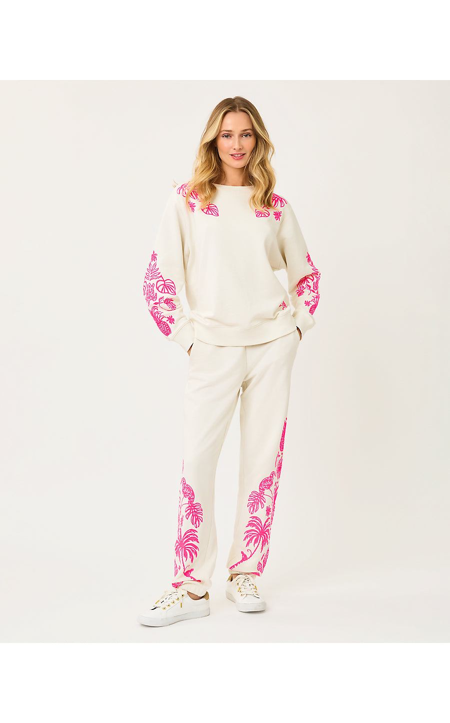 30" Silvie Embroidered Jogger - Coconut Safari Social Embroidery Pant
