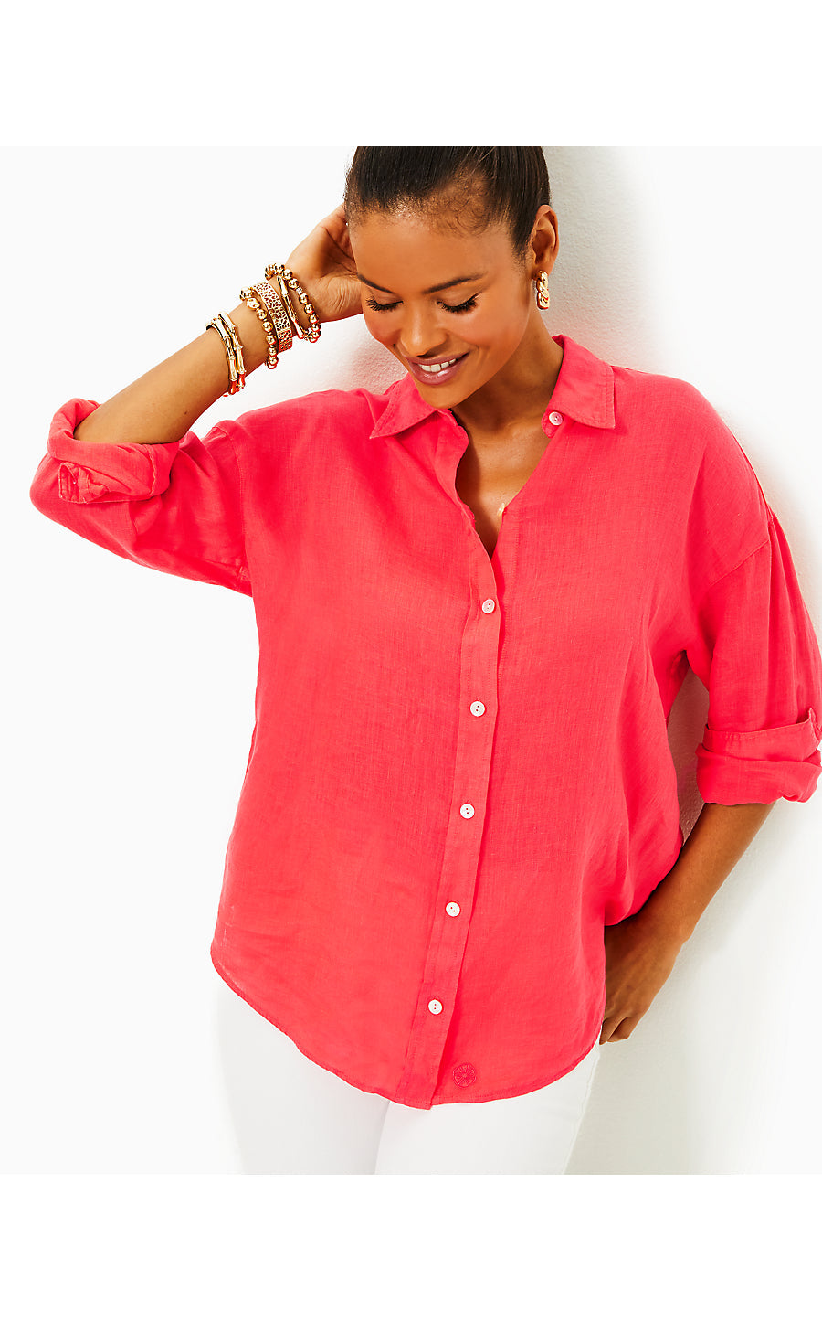 Stevey Relaxed Button Down Linen Shirt - Mizner Red