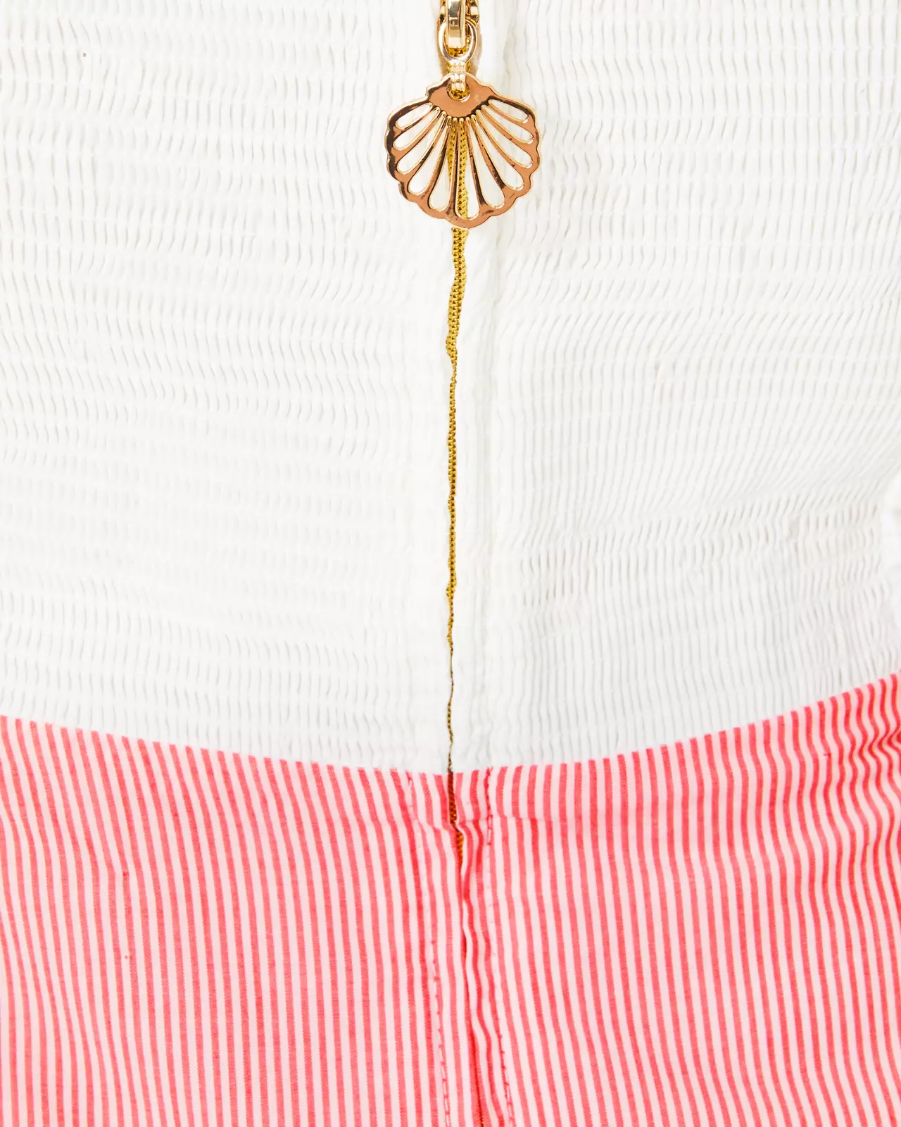 Winslow Eyelet Stripe Dress - Mizner Red - Seaside Stripe