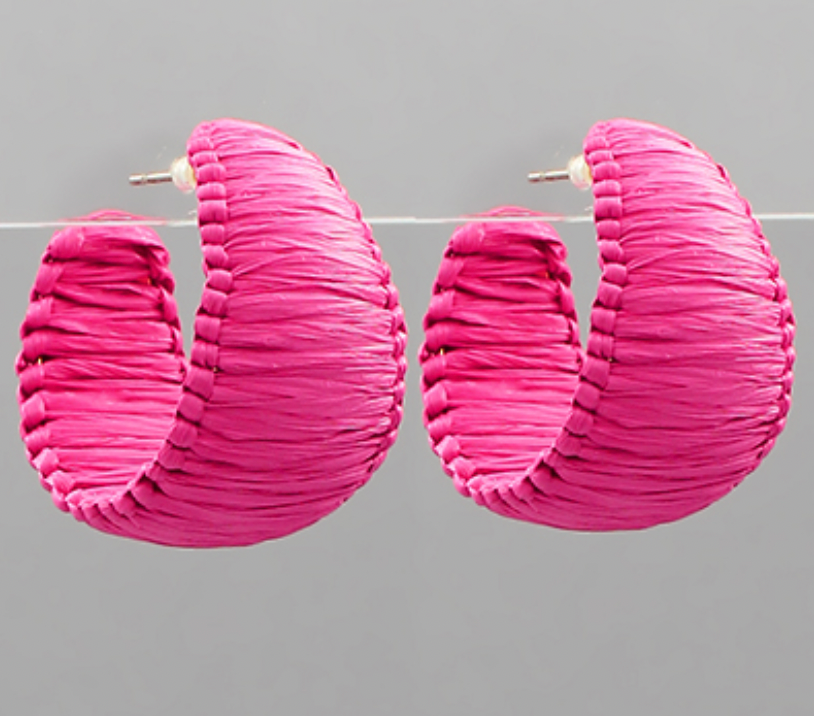 Raffia Wrapped Wide Hoops - Fuchsia