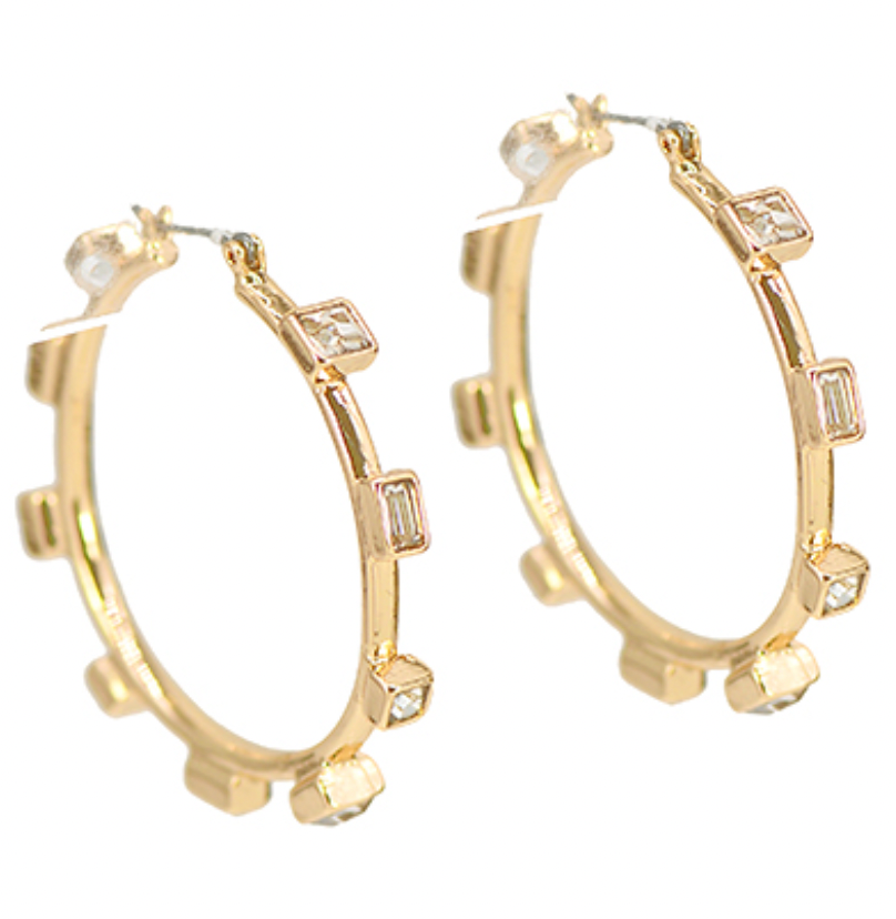 Station Square Stone Metal Hoops - Gold/Clear
