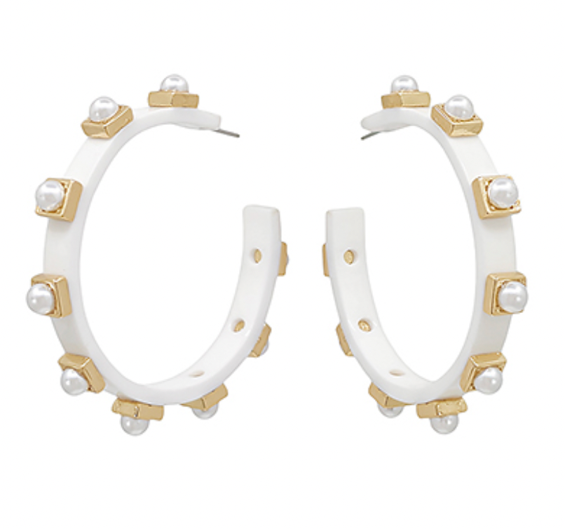 Pearl Station Acetate Hoops - White