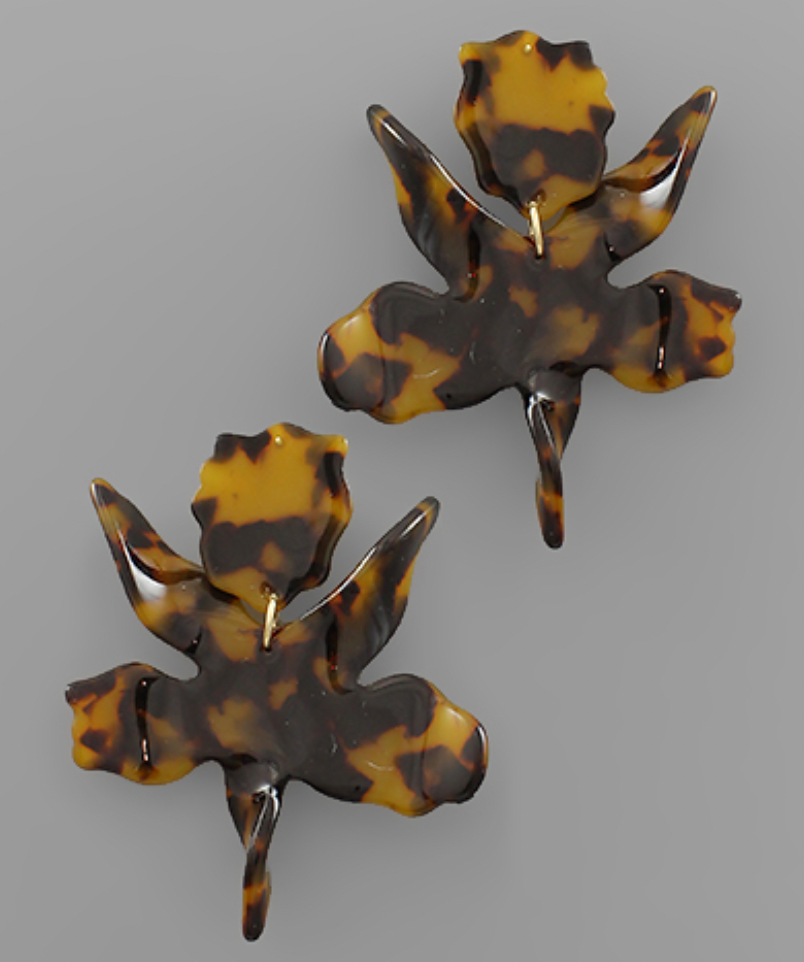 Acrylic Wavy Flower Earrings - Tortoise