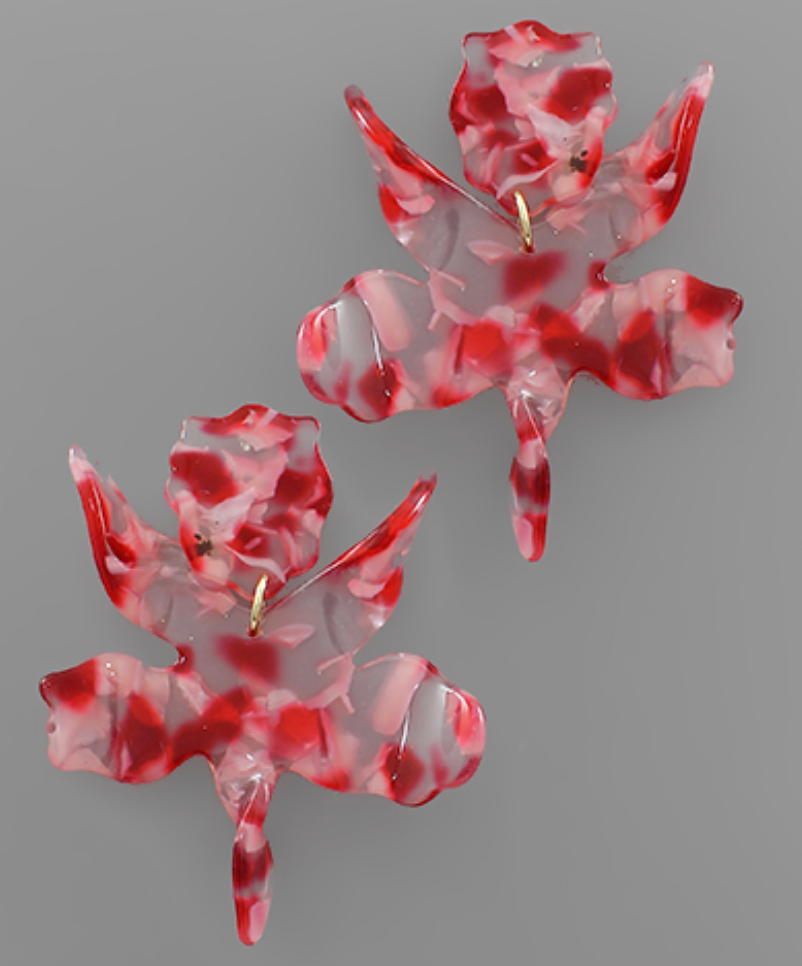 Acrylic Wavy Flower Earrings - Red