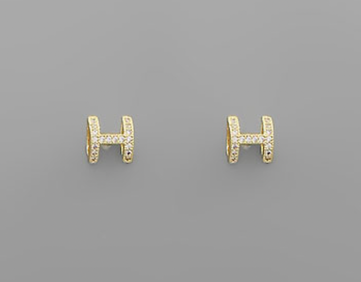 Crystal H Studs - Gold