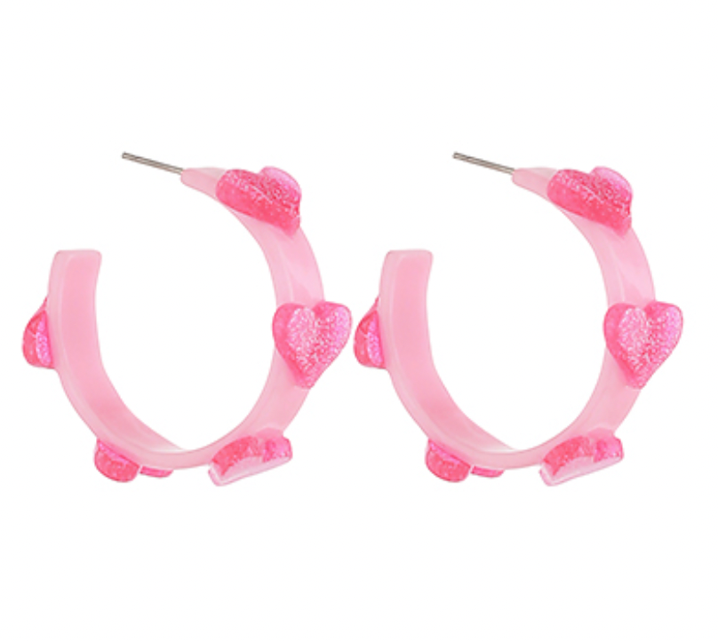 Heart Acetate Hoops - Pink